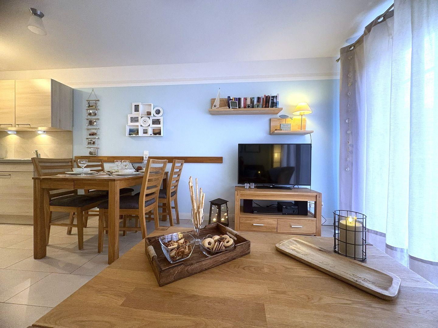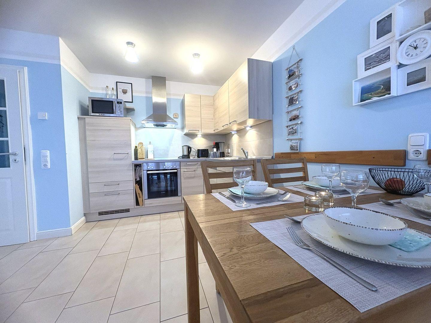 Moderne Ferienwohnung mit Terrasse und Gartenblick im Ostseeheilbad Zingst, ideal für Familien und Paare.