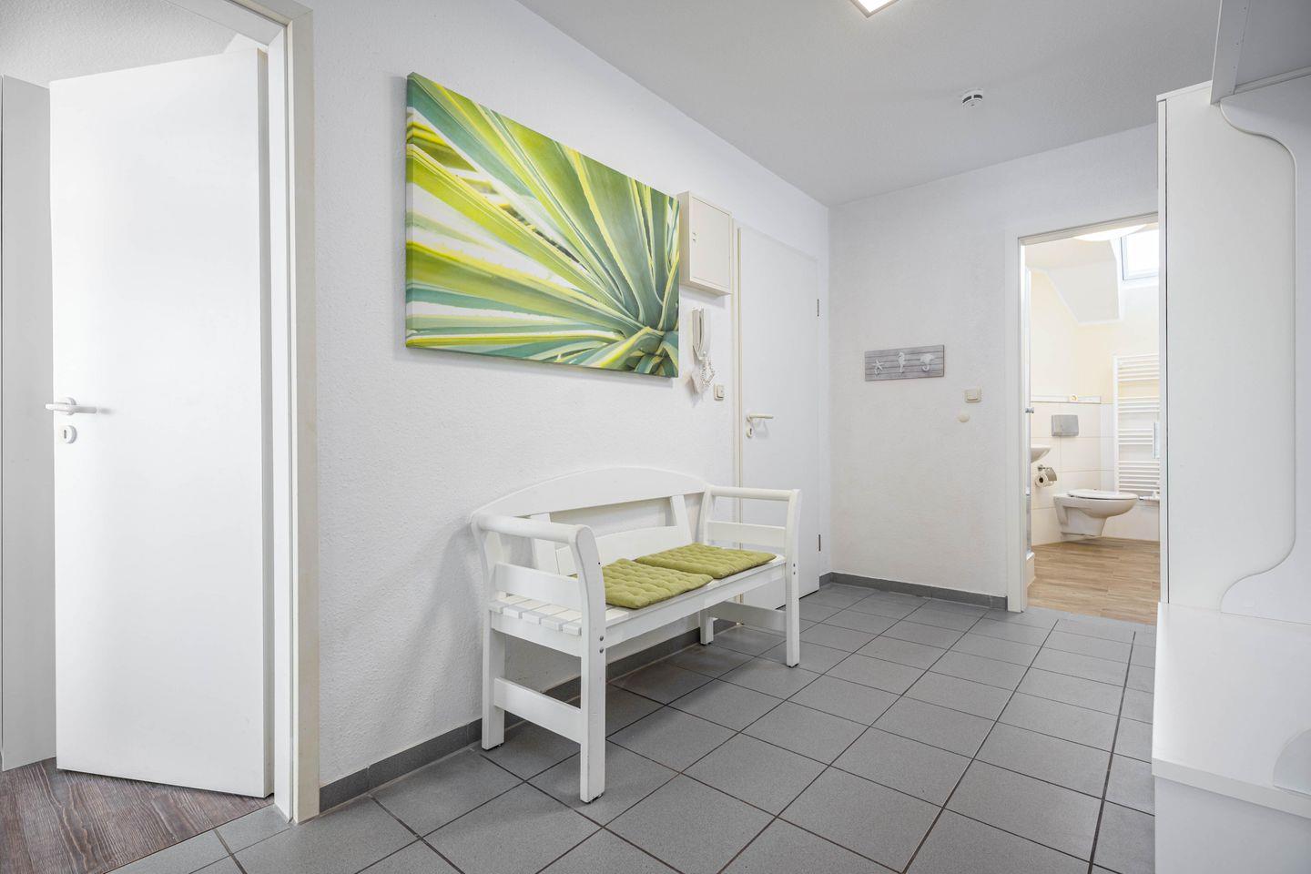 Die Wohnung Bahnhofstraße 10 - Wohnung 3 befindet sich im 1. Stock in Zingst und bietet auf 62 m² eine gut durchdachte Unterkunft für bis zu 4 Personen. Mit insgesamt 3 Zimmern, darunter 2 Schlafzimmer, eignet sie sich besonders für Familien, Paare oder kleine Reisegruppen, die eine gepflegte und praktisch ausgestattete Ferienwohnung in stadtnaher Lage suchen. Die Innenstadt erreichen Sie nach nur 400 m, Restaurants ebenfalls nach 400 m. Das Meer und der Strand liegen etwa 900 m entfernt, ebenso der öffentliche Nahverkehr. Einkaufsmöglichkeiten befinden sich in rund 950 m Entfernung.