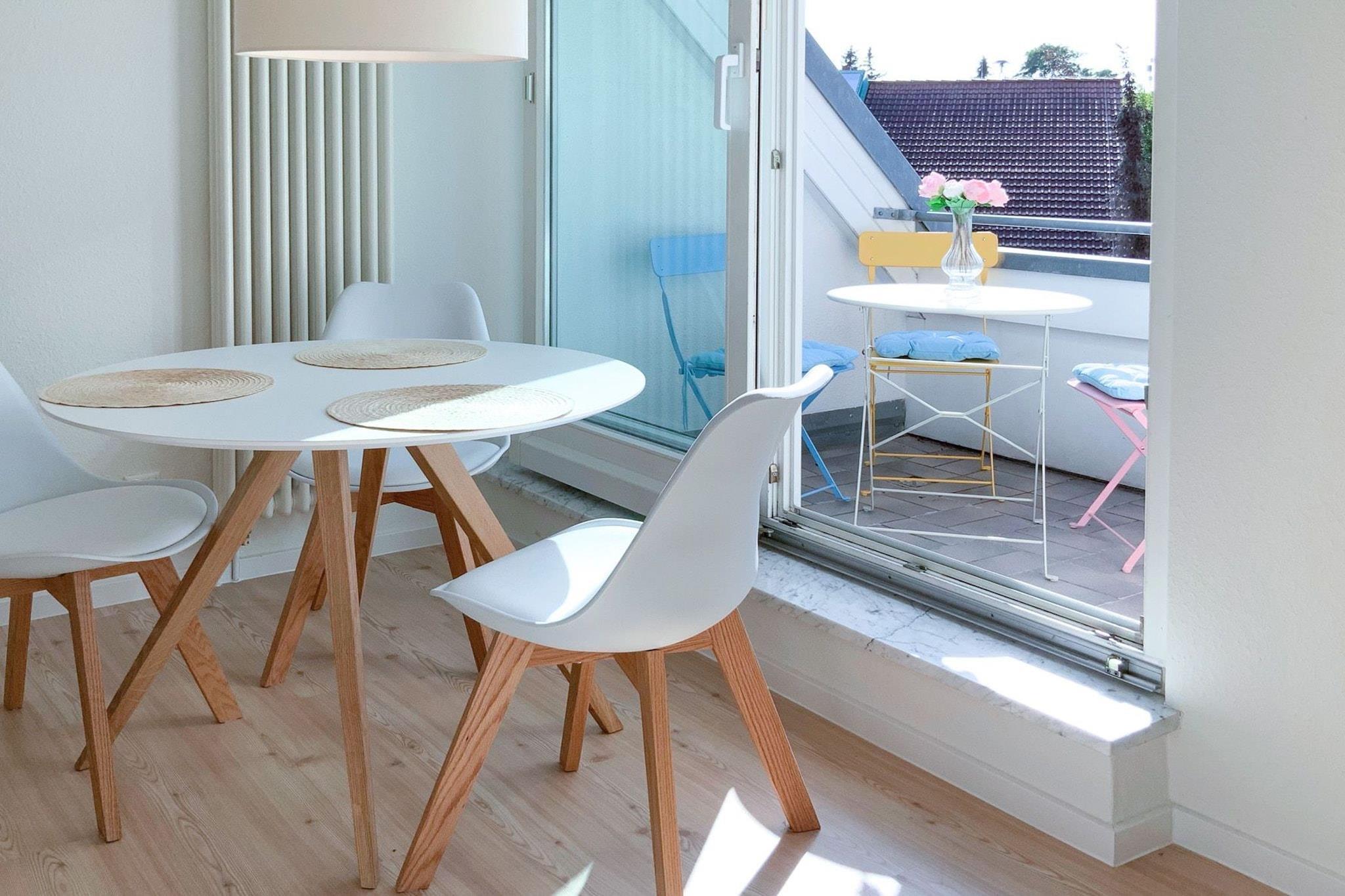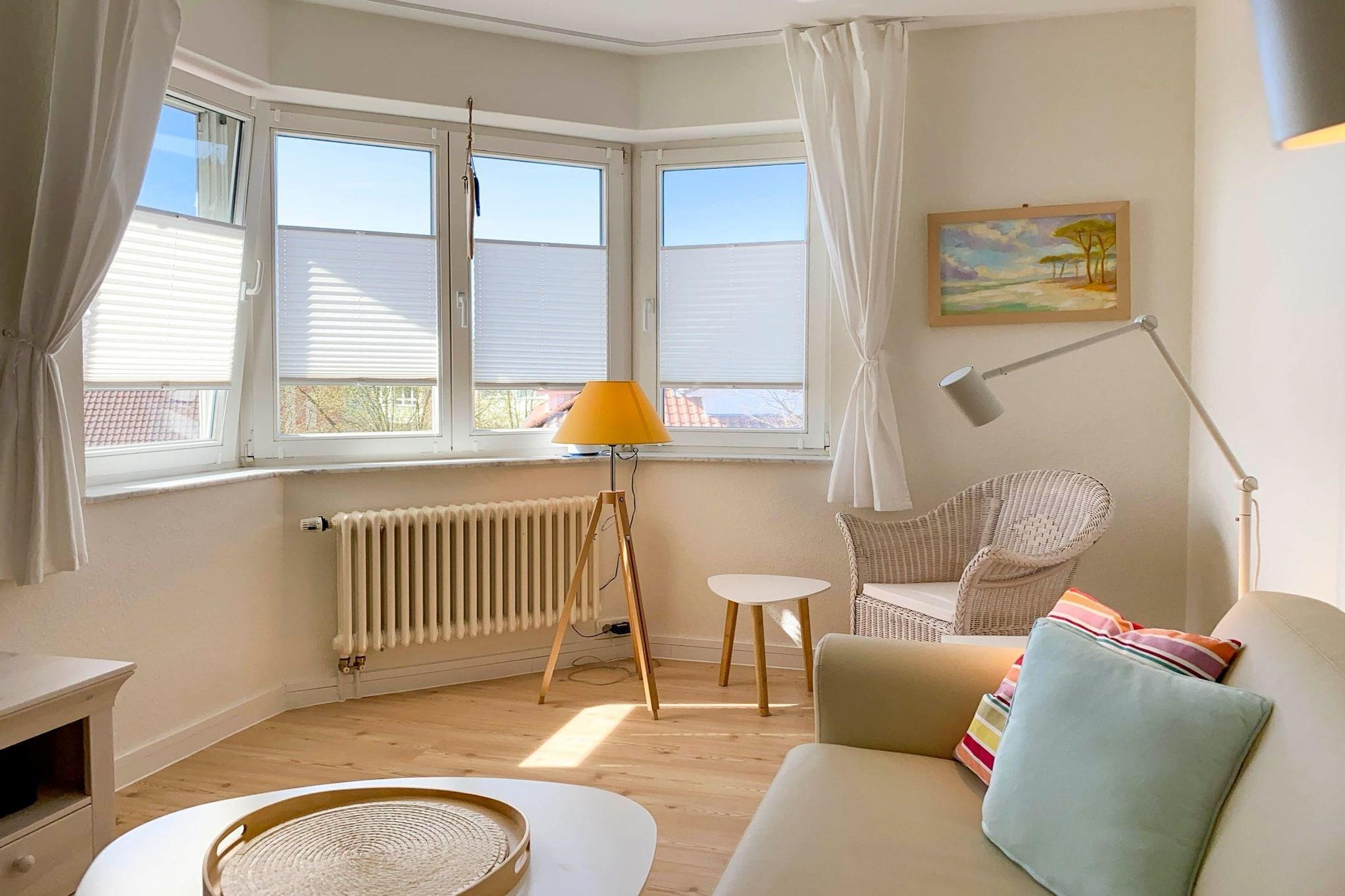 Die helle 2-Zimmer-Wohnung Kranichflug in Zingst liegt zentral und nur wenige Gehminuten von der Seebrücke entfernt.