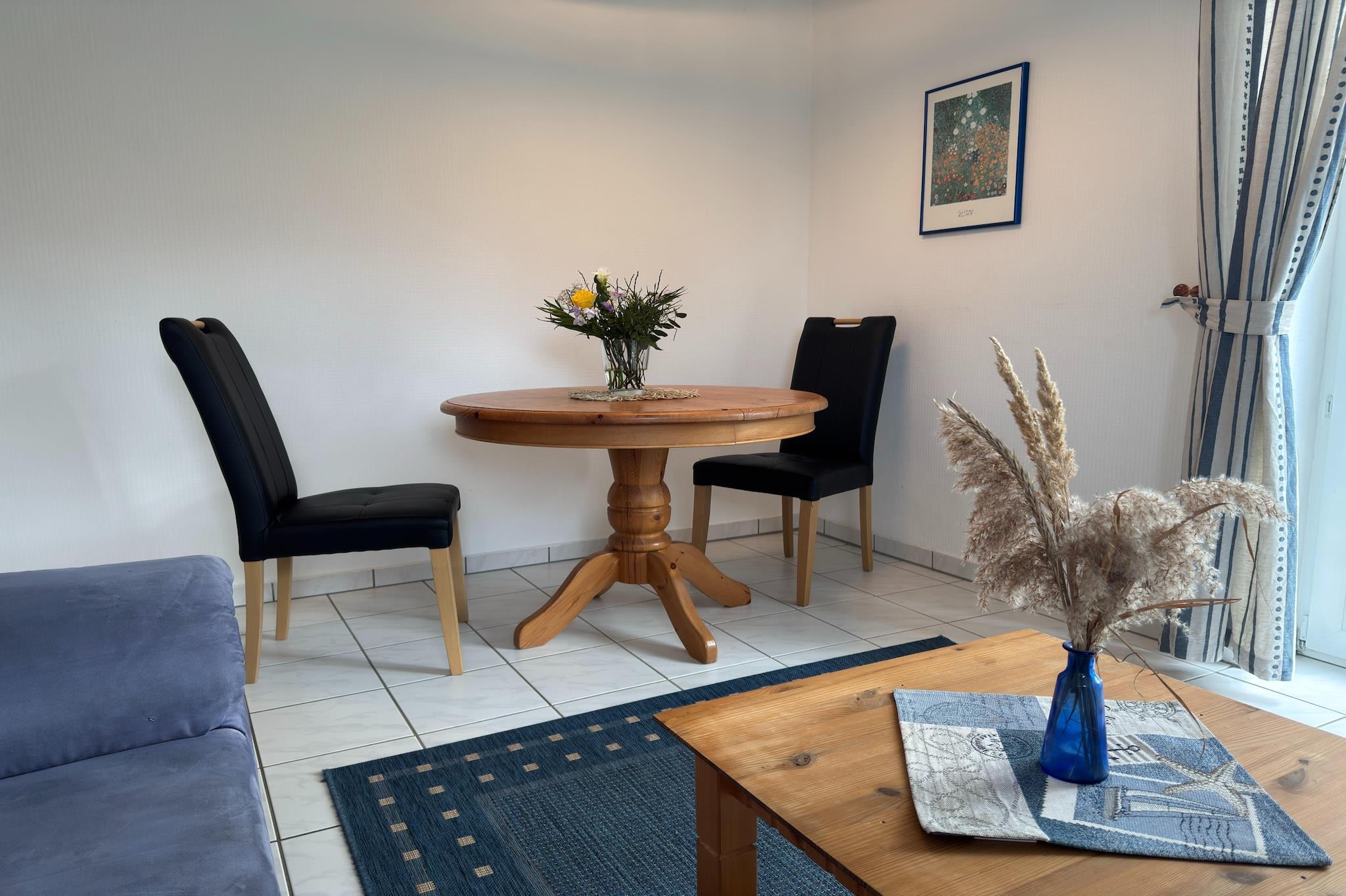 Dieses geräumige Apartment mit 1 Schlafzimmer im schönen Ostseebad Zingst ist ideal für einen romantischen Kurzurlaub zu zweit und bietet Platz für ein Baby. Nur 300 Meter vom weißen Sandstrand entfernt, ist das Apartment Teil eines charmanten Hauses mit fünf Ferienwohnungen. Paare können im sonnigen Garten entspannen oder ruhige Momente auf der privaten Terrasse genießen. Zingst, eingebettet zwischen Ostsee und Bodden auf der Halbinsel Fischland-Darß, verbindet traditionellen Küstencharme mit modernen Annehmlichkeiten. Die Stadt bietet Cafés, gemütliche Restaurants, Geschäfte und eine lange Promenade, die zu Spaziergängen am Meer einlädt. Das Aquadrom in Graal-Müritz und das Wellnesscenter in Zingst bieten das ganze Jahr über Spaß und Entspannung. Aktive Gäste können das ausgedehnte Rad-, Skate- und Wanderwegenetz in der Nähe erkunden. Das Apartment verfügt über ein geschmackvoll eingerichtetes Wohnzimmer mit voll ausgestatteter offener Küche und Essbereich, ein komfortables Schlafzimmer und ein modernes Badezimmer mit Dusche und WC. Egal, ob Sie am Strand spazieren gehen, den Nationalpark erkunden oder einfach zu Hause entspannen, dieser Rückzugsort verspricht einen gemütlichen und malerischen Aufenthalt.
