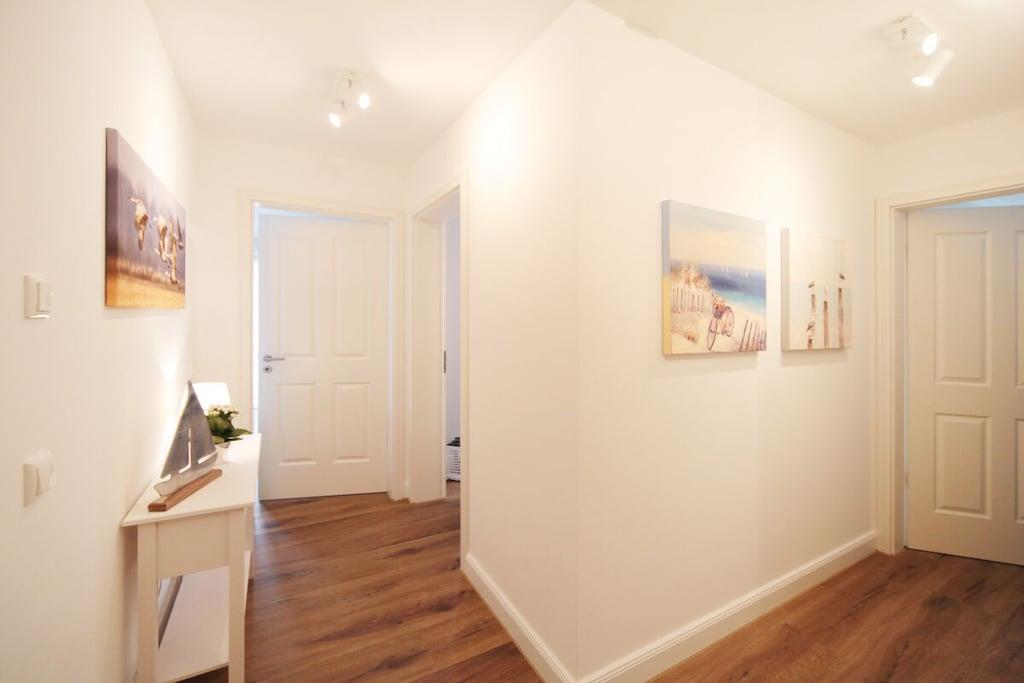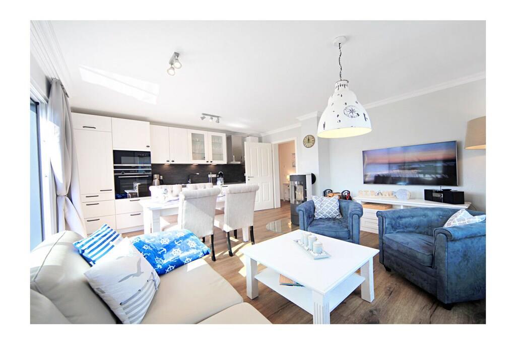 Die Ferienwohnung hat 72m² und ist für bis zu 4 Personen geeignet. Sie verfügt über 2 Schlafzimmer mit je einem Boxspring-Doppelbett. Die Wohnung hat ein modernes Bad mit ebenerdiger Wellness-Dusche und eigener Sauna. Im gemütlichen Wohn-Essbereich finden Sie zudem einen Holzofen und einen angrenzenden Balkon in Südlage. Die Küche ist modern und voll ausgestattet u.a. mit Kaffeemaschine, Tassimo und auch ein Kaffeevollautomat ist zubuchbar. Im Wohnzimmer sowie in beiden kuscheligen Schlafzimmern befindet sich je ein Flat Screen-TV. Die Wohnung verfügt ausserdem über kostenfreies WLAN. Alle Fenster auch die Balkonschiebetür sind mit Fliegenschutzgitter versehen. Ein Aufzug bringt Sie direkt von der Tiefgarage zur Wohnung in den ersten Stock. Für unsere Wohnung enstehen keinerlei verbrauchsabhängige Nebenkosten! Wichtige Maße zur Tiefgarage: Plattform des Autoaufzugs: 2,50 m x 5,50 m Tiefgarageneinfahrt Höhe: 1,90 m Parkplatzeinfahrt Höhe: 1,90 m Parkplatzgröße: 2,50 m x 5,50 m Alles zur Ferienwohnung: www.traum-ferienwohnung-zingst.de