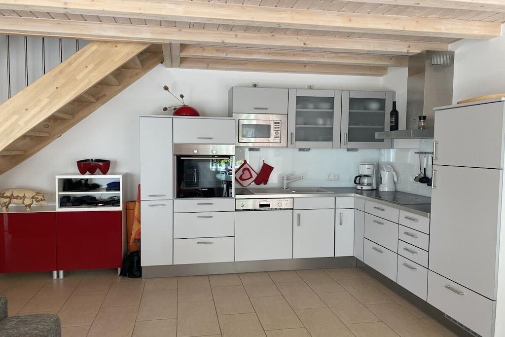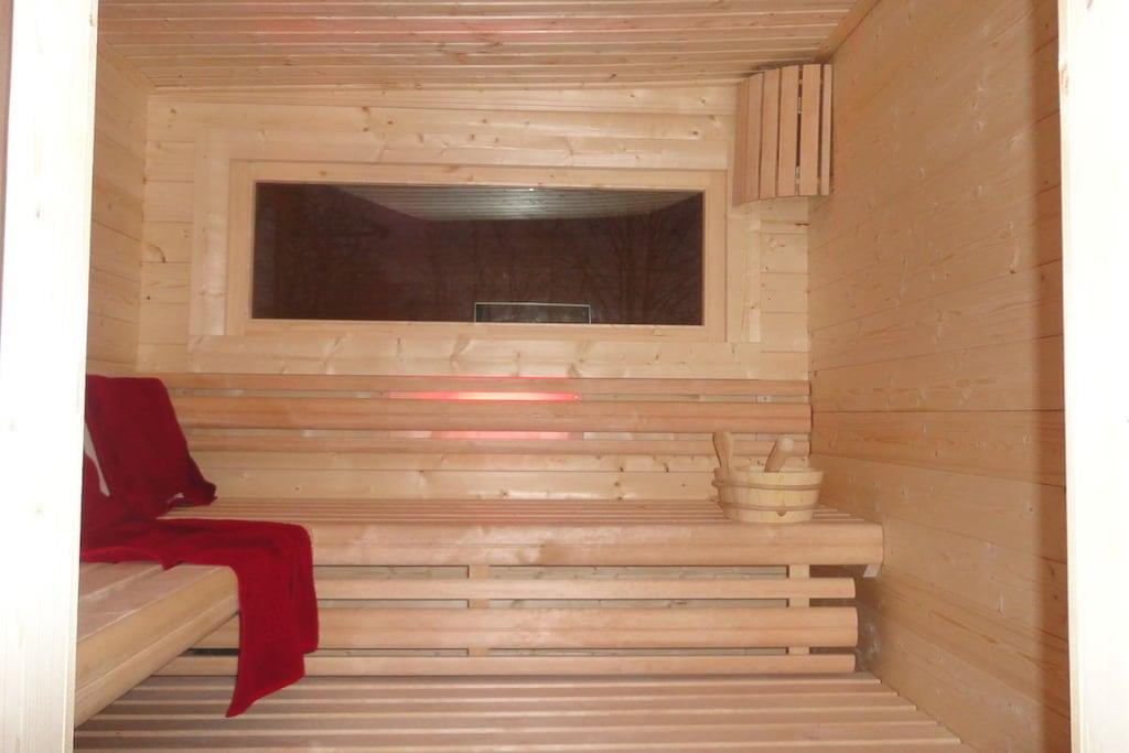 Parterre: (Wohnzimmer(TV, Kaminofen, Sitzecke, DVD-Spieler, Stereoanlage, Heizung), Küche(, , Kochnische, Esstisch, Herd, Kochplatte, Wasserkocher, Toaster, Kochherd, Kaffeemaschine, Backofen, Mikrowelle, Spülmaschine, Kühlschrank, Tiefkühlschrank, Heizung, ), Badezimmer(, Toilette, Dusche, Waschbecken, Heizung), Ruheraum(Sauna)) In der 1. Etage: (Schlafzimmer(, , Doppelbett), Schlafzimmer(, , Doppelbett), Badezimmer(, Toilette, Dusche, Waschbecken, Heizung)) Abstellraum(Trockner, Waschmaschine, Trockenschrank), Internet, Internet, Terrasse(, Gartenmöbel, Liegen), Garten(Zentraler Grill, Liegewiese, Gartenmöbel, Liegen)