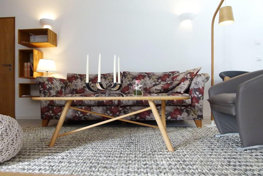 Designorientierte Erdgeschosswohnung in Zingst mit Kamin, Klavier, Garten und Sauna für entspannte Ferien.
