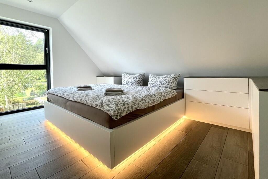 Willkommen in Zingst in unserem freundlichen, hellen Ferienhaus direkt am Naturschutzgebiet. Das Haus ist nur ca. 250 Meter von der Ostsee entfernt, hat eine ruhige Lage und ist daher ideal für einen entspannenden Familienurlaub. Unser Ferienhaus wurde 2021 neu gebaut und steht ab Juni 2021 zur Vermietung. Es erwarten Sie ein Wohnzimmer mit großem Eckfenster und Küche, 2 Schlafzimmer mit Doppelbett (180 cm und 160 cm Breite), 2 Bäder und der Blick ins Grüne. Alle Zimmer sind klimatisiert. Entspannen Sie auf der großen Terrasse und lauschen Sie dem Meer. Die Ostsee ist über einen kleinen Waldweg direkt zu erreichen.
