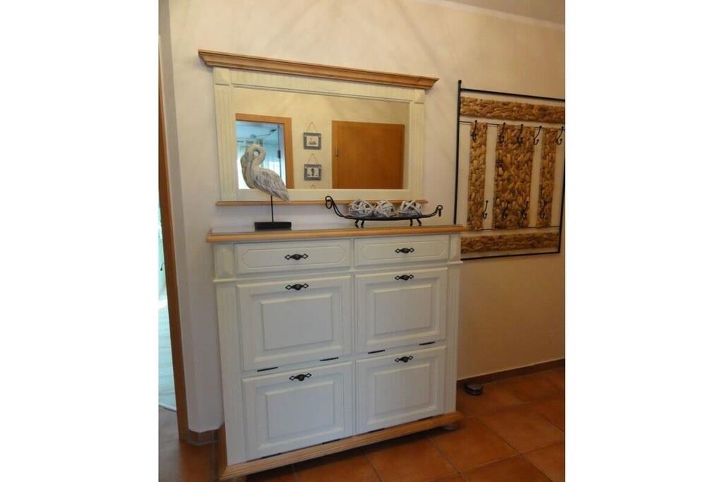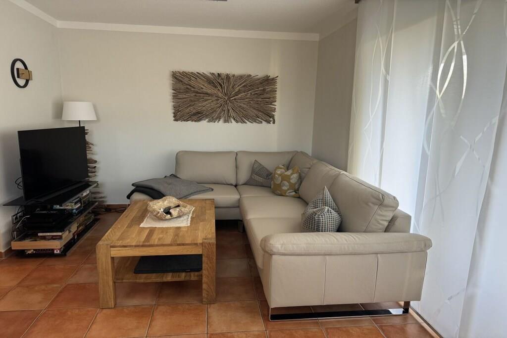 Die Wohnung verfügt über zwei Schlafzimmer mit Doppelbetten und großen Kleiderschränken. Die Doppelbetten sind mit hochwertigen Kaltschaummatratzen versehen. Ein Schlafzimmer ist mit LCD TV. Ein Kinderbett, ein Kinderhochstuhl und eine Kindersitzgruppe stehen zur Verfügung. Die Küche ist mit folgenden Geräten ausgestattet: E- Herd, Geschirrspüler, Mikrowelle, Kühlschrank, Gefrierschrank, Kaffeemaschine, Wasserkocher, Toaster, Radio. Im Wohnbereich befindet sich ein LCD TV und ein Blue Ray Player. Ihnen steht kostenlos Sky Entertainment zur Verfügung. Sollte mal schlechtes Wetter sein, stehen zahlreiche Gesellschaftsspiele zur Verfügung. Das Bad ist mit einer großen ebenerdigen Dusche ausgestattet. Kostenlose W-LAN Nutzung.