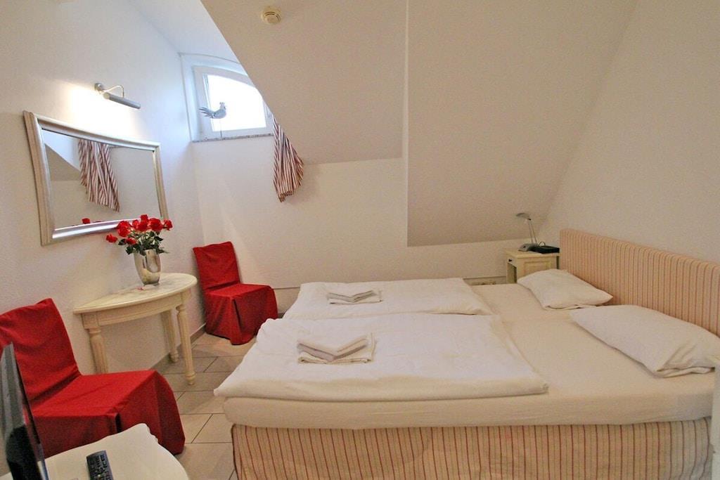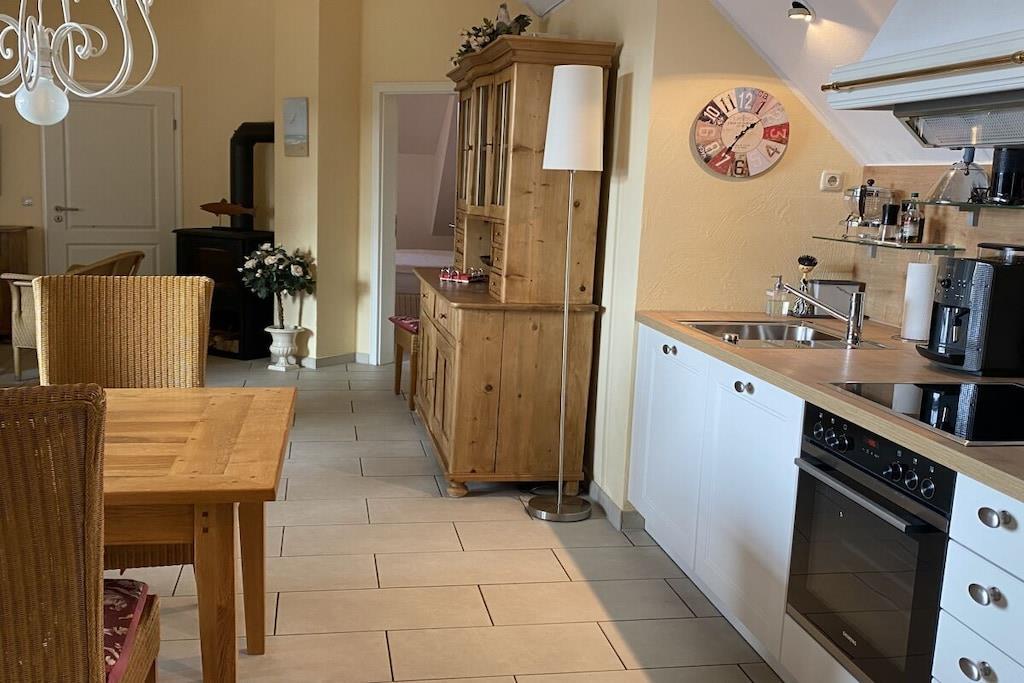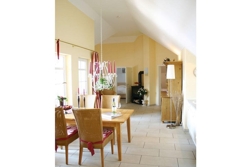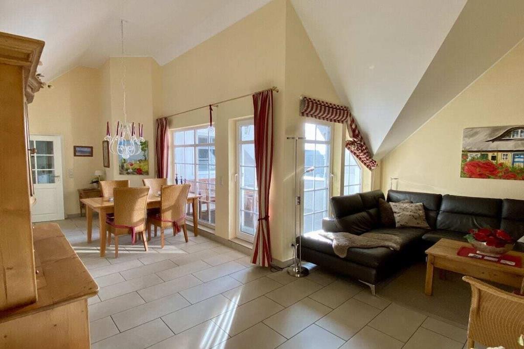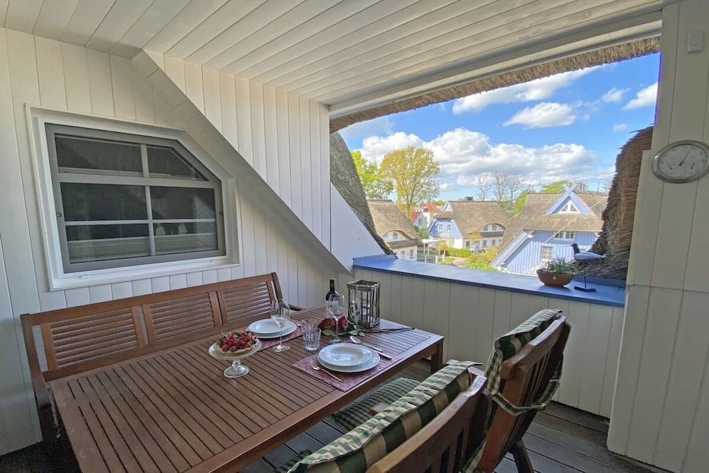 Ein zauberhaftes Refugium für Körper und Geist - für Menschen, die das Besondere mögen - in einer der schönsten Rohrdachhäuser in Zingst. Unsere Ferienwohnung liegt im 2. OG unter dem Spitzboden, die hohe Decke gibt der großzügigen 3-Raum-Wohnung (für 2 - 4 Personen) einen besonderen Flair. Liebevoll eingerichtet in warmen Farben mit 5-Sterne-Komfort! Loggia (Süd-West-Lage). Hauseigener Wellnessbereich mit 3 Saunen, Kneippbecken und einem schönen Ruhebereich - bequem mit dem Bademantel zu erreichen. Eine echte Traumwohnung!