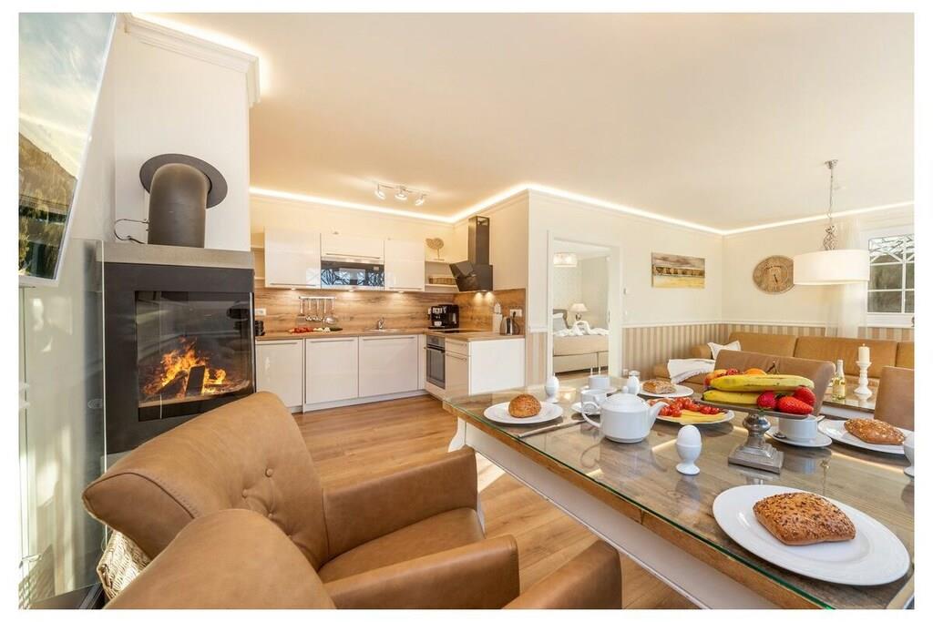 Die Villa Strandblick bietet Ihnen einzigartige Ferienwohnungen in 1.Reihe am Strand mit Meerblick (nicht in der Saison). Diese luxuriöse Ferienwohnung ist mit einem Kamin ausgestattet. Entspannen Sie im kleinem aber feinem Wellnessbereich mit Sauna. Neubau direkt am Strand mit Brötchenservice (im Sommer). In der voll ausgestattete moderne Küchen ist ein Geschirrspüler, Dunstabzugshaube, Herd, eben allem was das Küchenherz so braucht. In jedem Schlafzimmer befindet sich ein weiterer Flat-TV. Das Bad ist mit ebenerdige Wellnessdusche, Fußbodenheizung und einer Badewanne ausgestattet. Indirekte Beleuchtung in den Stuckleisten, für gemütliche Abendstunden .