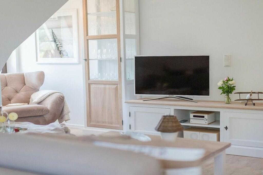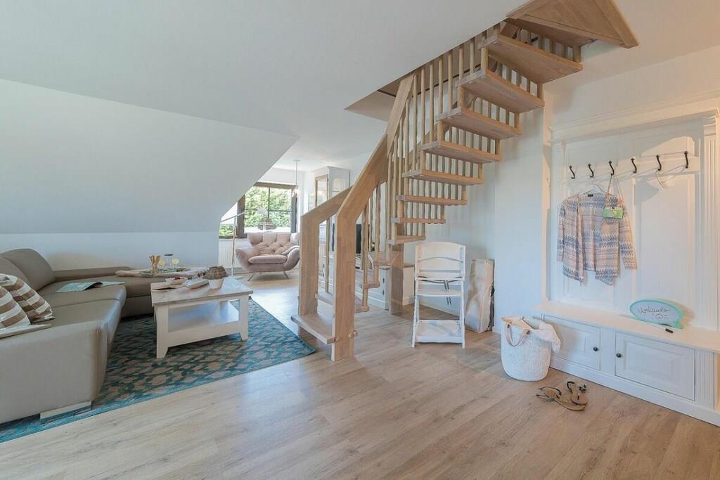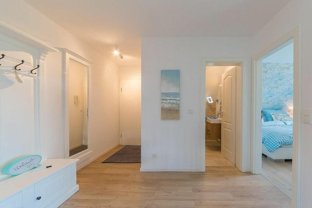 Ihre Ferienwohnung hat eine Größe von 66 m² und ist eine Maisonettewohnung mit großem Balkon, 2 Schlafzimmern, eine Badezimmer und einem großes Wohn/Esszimmer mit Küche. Im Flur können Sie Ihre Garderobe anhängen. Das moderne Badezimmer verfügt über eine ebenerdige Dusche und Fußbodenheizung. Bei schlechtem Wetter haben wir für Sie /Ihre Kinder eine Playstation mit diversen Spielen (Fussball, Autorennen, Harry Potter, Herr der Ringe etc.) in der Wohnung zur Verfügung. In diesem sehr schicken Mehrfamilienhaus, mit 5 Wohneinheiten befindet sich im Abstellraum eine Waschmaschine, die gegen Gebühr genutzt werden kann. Die meiste Zeit werden Sie aber sicherlich an unserem weißem, feinsandigem Strand genießen wollen. Er ist nur 2 Minuten von Ihrer Unterkunft entfernt. Die Sauna steht Ihnen im Garten zur Verfügung und kostet 5,- je halbe Stunde.