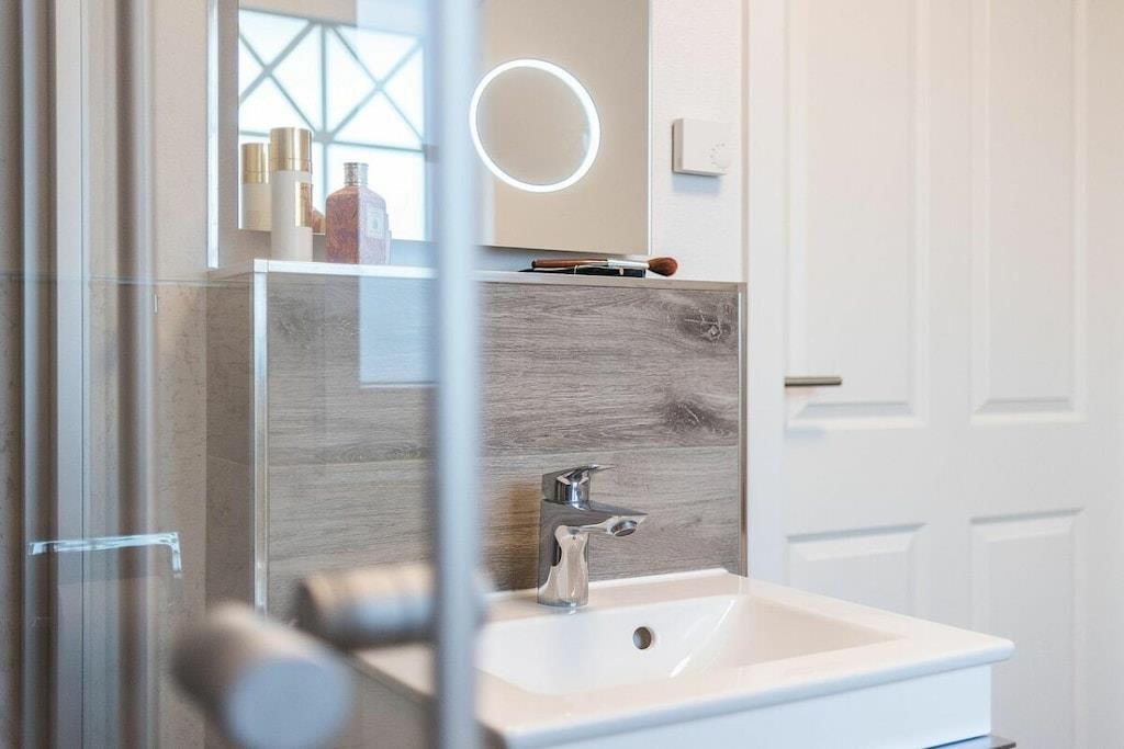 In der Ferienwohnung befindet sich eine voll ausgestattete moderne Küchen mit Geschirrspüler, Dunstabzugshaube, Herd, eben mit allem, was das Küchenherz so braucht. In jedem Schlafzimmer befindet sich ein weiterer Flat-TV. Im Bad ist die ebenerdige Dusche mit Fußbodenheizung und Wellnessdusche ausgestattet. Einige Bäder haben eine Badewanne oder einen Fernseher im Badezimmerspiegel. Die Ferienwohnung hat im gesamten Wohnbereich eine indirekte Beleuchtung in den Stuckleisten, um Ihnen die Abendstunden gemütlich zu gestalten.