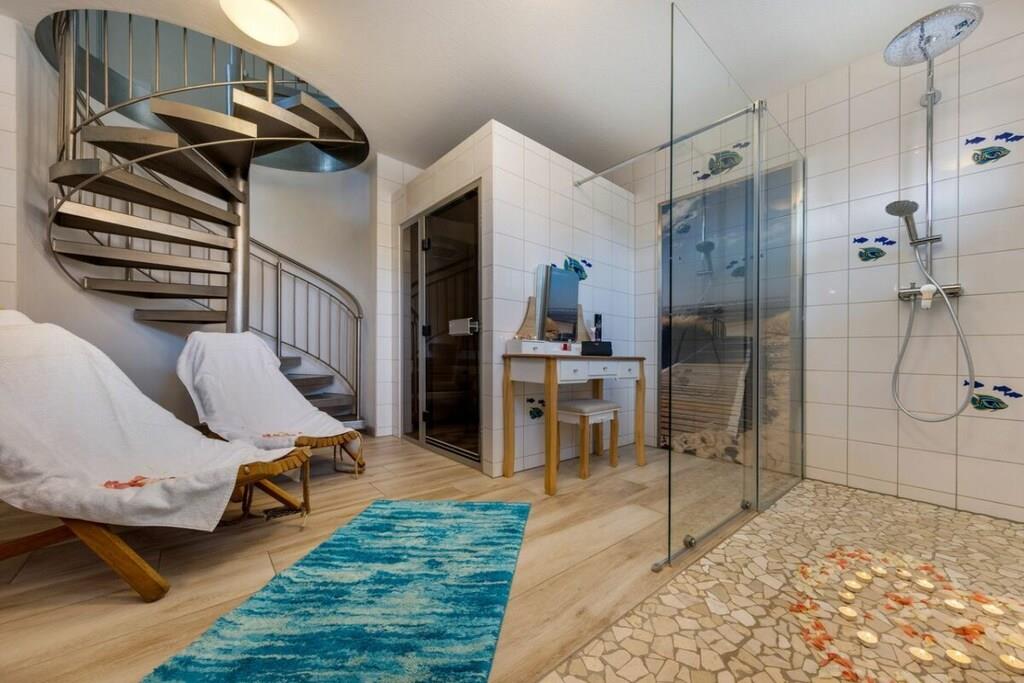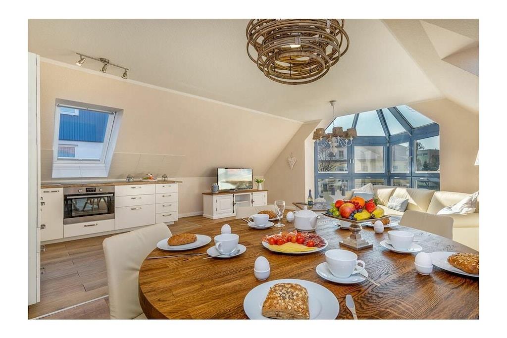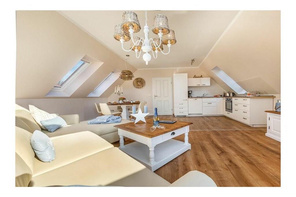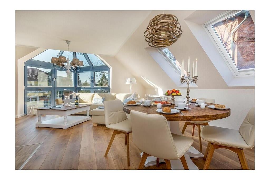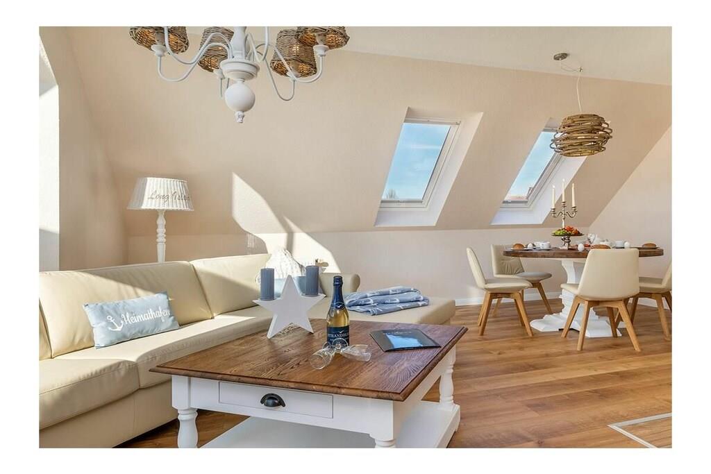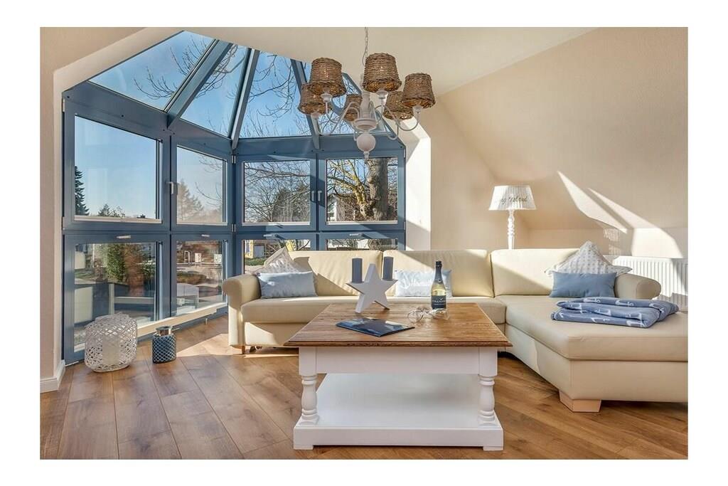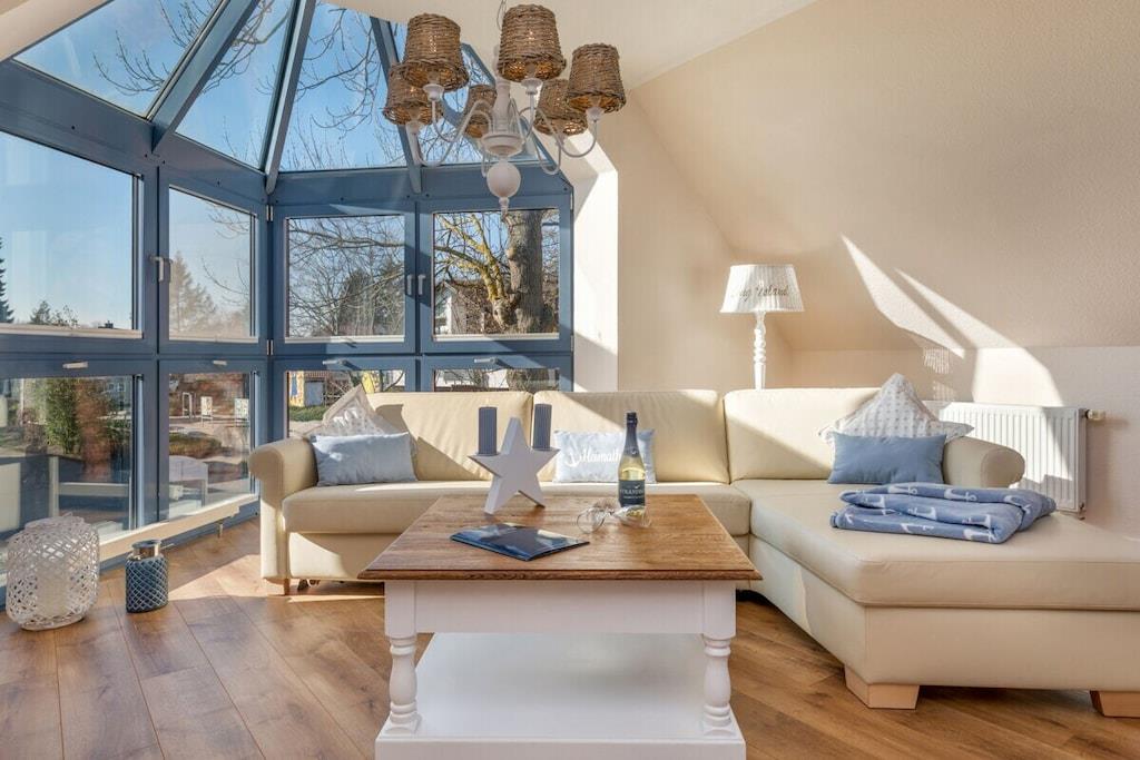 Zentrale Ferienwohnung in Zingst mit Sauna, Kamin und maritimer Einrichtung für erholsame Tage.