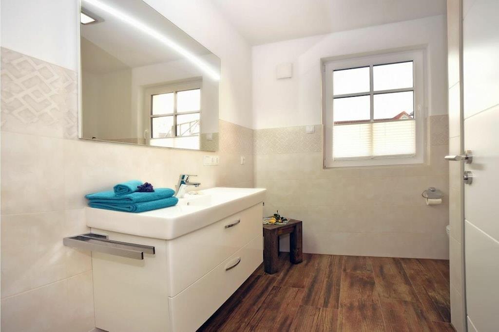 Diese neue gebaute sehr helle Ferienwohnung (Fertigstellung November 2018) im Zentrum von Zingst hat 2 Zimmer. Das Schlafzimmer lädt , mit seinem sehr bequemen Bett zum Träumen ein. Weiterhin finden Sie hier einen großem Kleiderschrank und einen zusätzlichen Flat-TV. Über den Flur, mit Garderobenmöbeln gelangen Sie in das moderne und trotzdem sehr gemütliche Wohnzimmer. Die Couch bietet die Möglichkeit einer Hotelaufbettung, in Form eines zusätzlichen Bettes von 170x200. Die helle, moderne und sehr gut ausgestattete Küche, mit Essbereich lässt keinen Wünsche offen. Helles großen Bad mit ebenerdiger Dusche und einem Fenster. Der große Waschtisch bietet Ihnen Platz für Ihre Badutensilien.