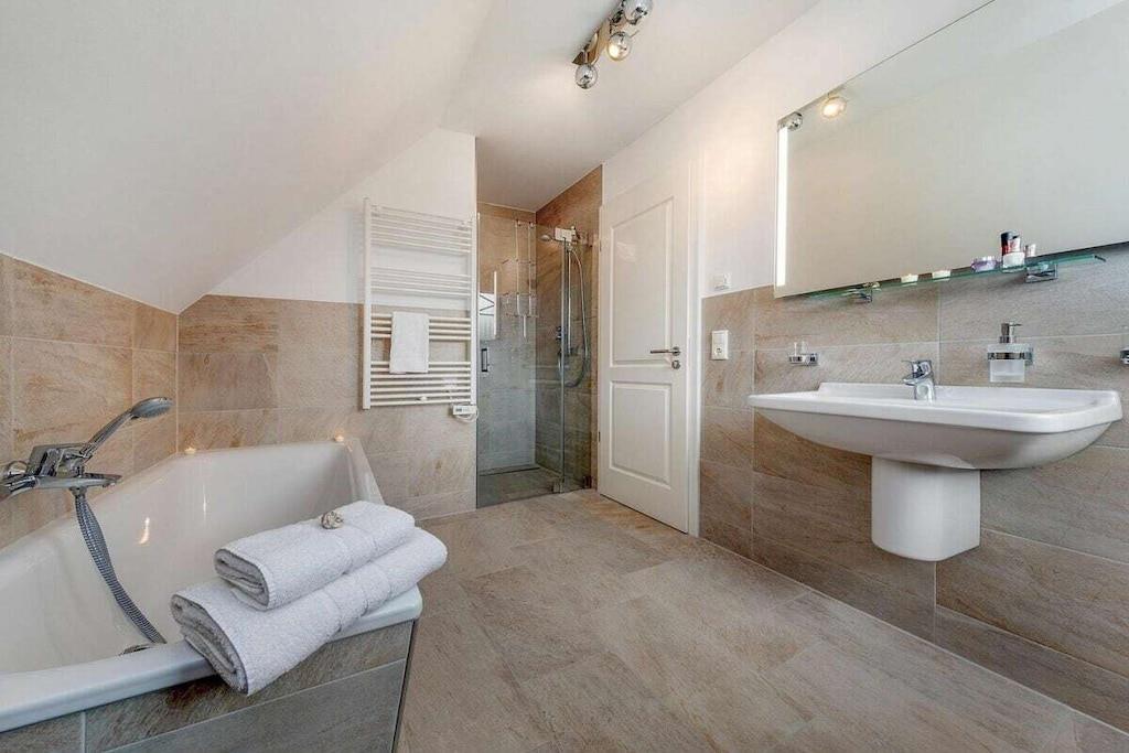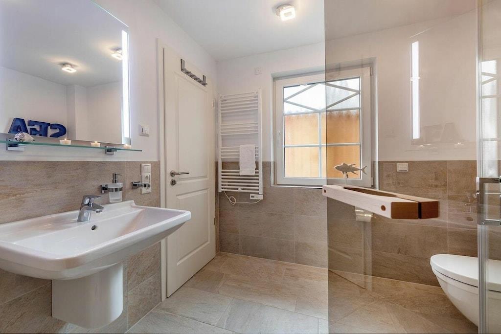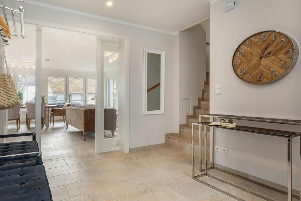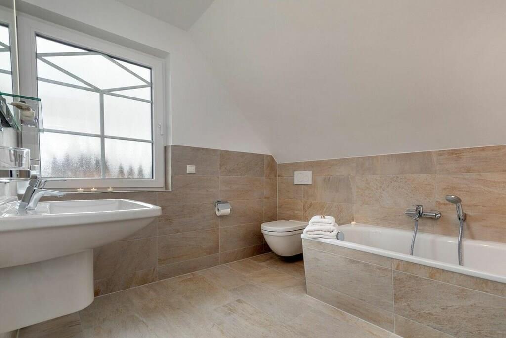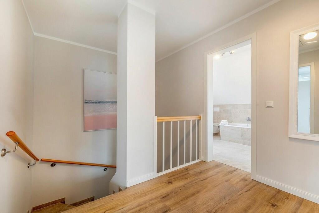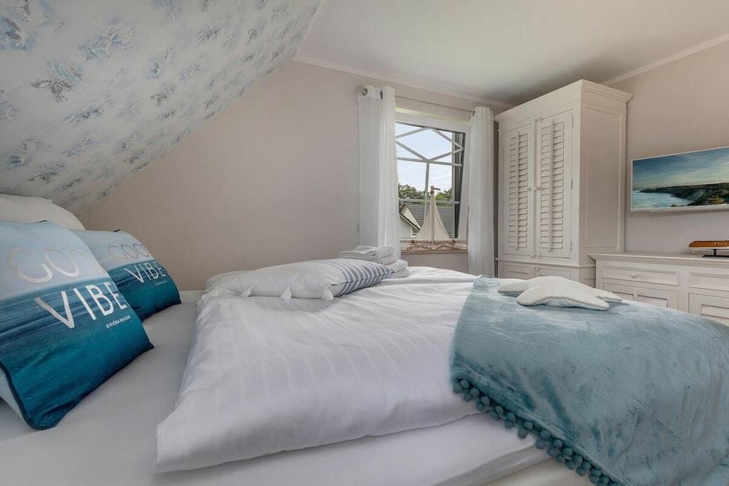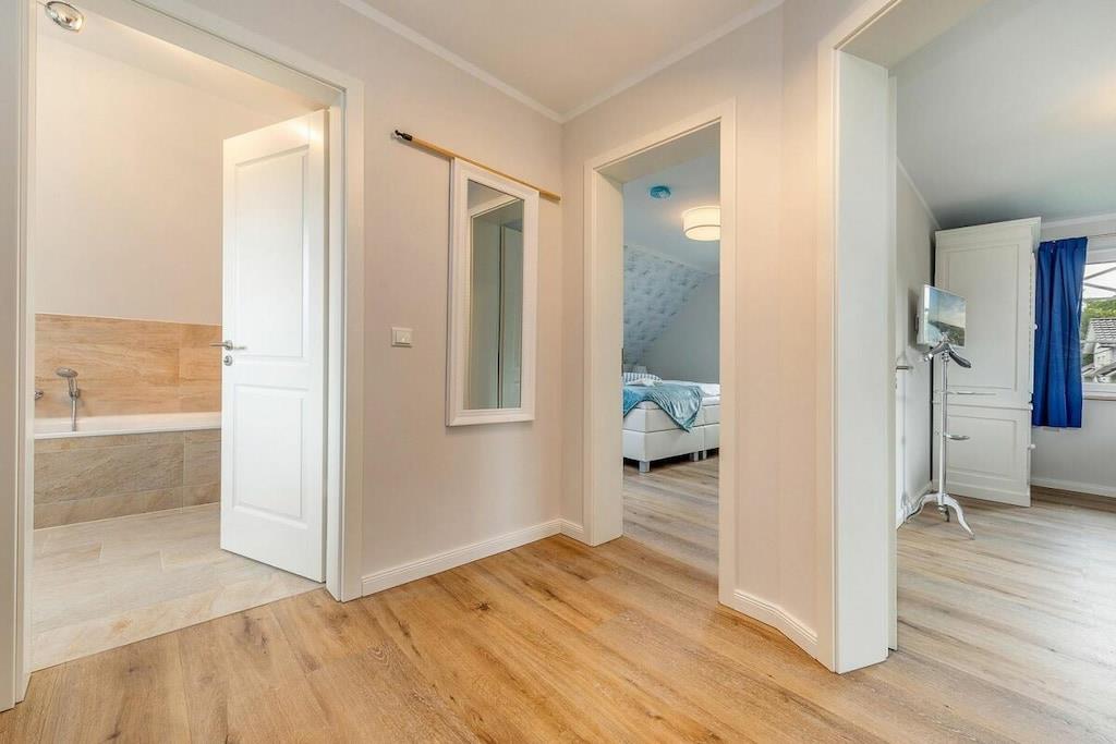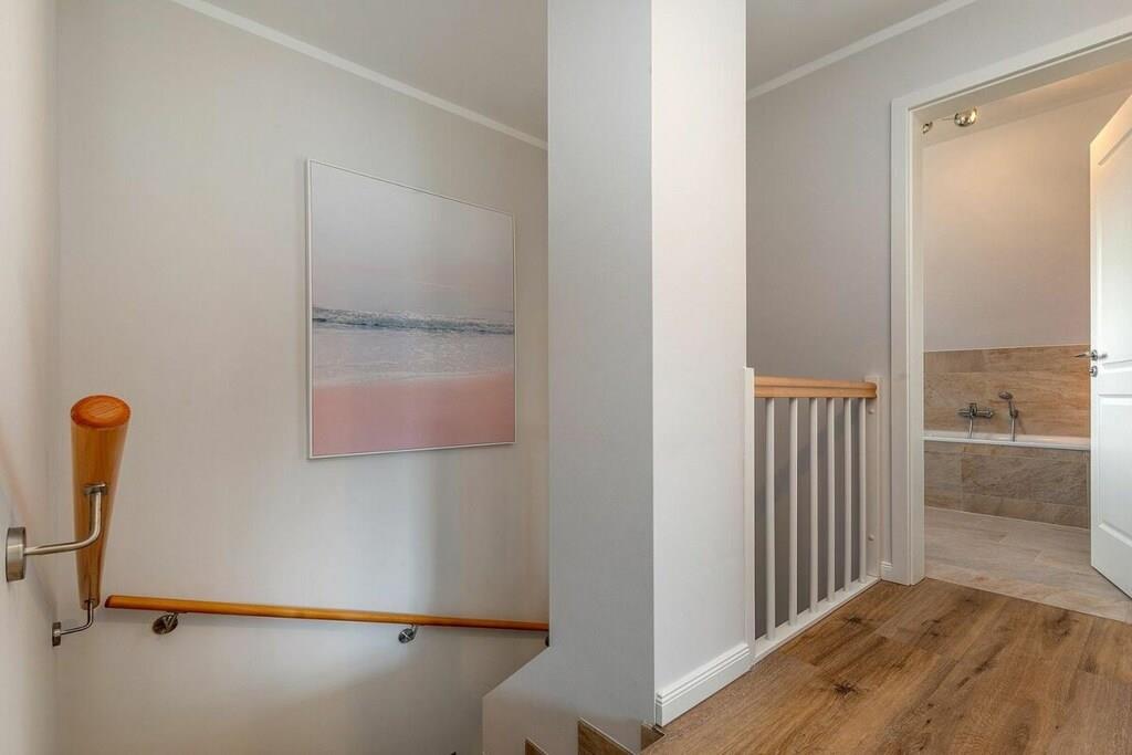 Die Lage dieses wunderschönem, neuen Hauses ist ideal um sich zu entspannen. Es liegt am Ende einer Sackgasse. Den Strand erreichen sie in wenigen Minuten über das Zentrum oder sie fahren den idyllischen Radweg durch den Wald und kommen direkt am weißen Ostseestrand raus. Ausstattung EG: großzügiger, heller Wohnessbereich mit Kücheninsel und Kamin in der Loungeecke, großes Duschbad mit Sauna, Abstellraum mit Waschmaschine und Trockner, großer Flurbereich Ausstattung OG: 2 Schlafzimmer mit jeweils 180x200m Boxspringbetten, ein weiteres Schlafzimmer mit einem Einzelbett und das Familienbadezimmer mit Dusche und Badewanne Außenbereich: großer Balkon, Terrasse mit Gartenmöbeln, Parkplatz