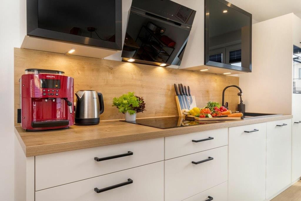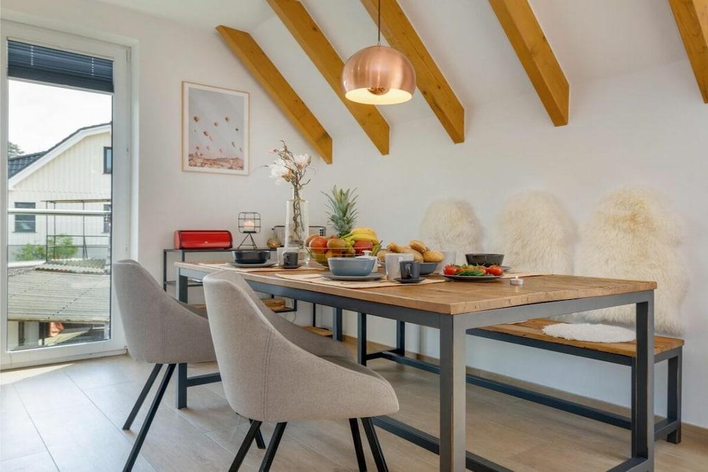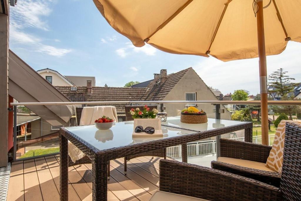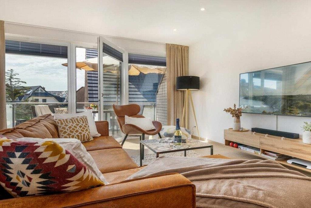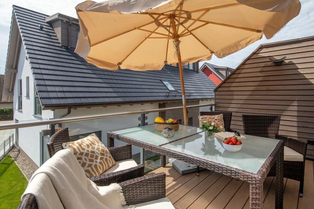 Moderne Ferienwohnung Suite Windrose mit Sauna und zwei Balkonen nahe Ostsee-Strand.