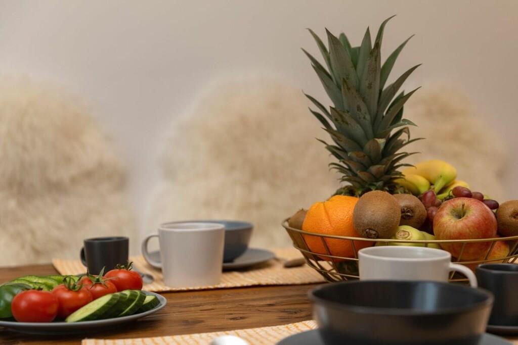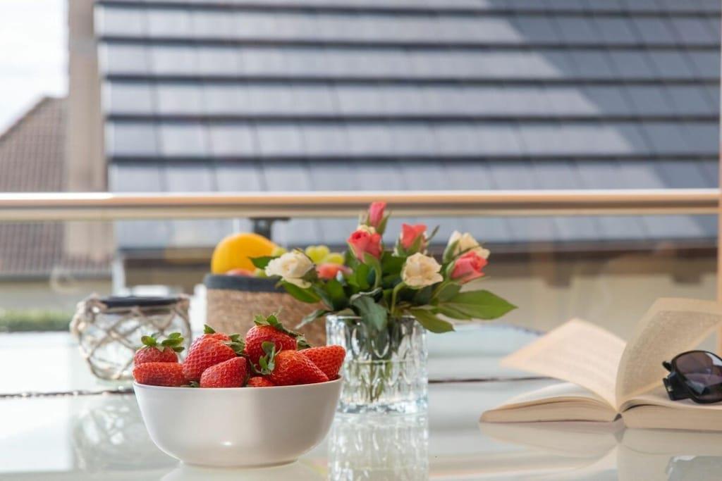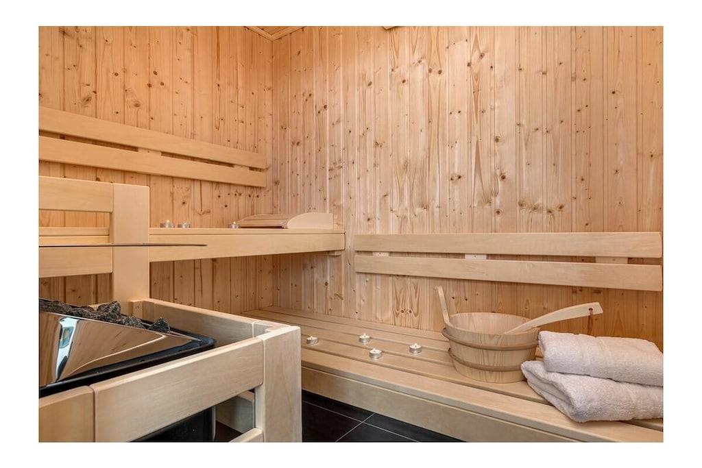 , , Wohnzimmer(, , TV, Esstisch, Radio), Küche(, , Esstisch, Kochplatte, Kochplatte, Wasserkocher, Toaster, Kaffeemaschine, Backofen, Spülmaschine, Kühlschrank, Tiefkühlschrank), Schlafzimmer(Doppelbett, Doppelbett), Schlafzimmer(Doppelbett, Doppelbett), Badezimmer(, , Toilette, Dusche, Dusche, Waschbecken, Föhn), Badezimmer(, , Toilette, Dusche, Dusche, Waschbecken, Föhn), Ruheraum(Sauna), Internet, Internet, Waschmaschine, Balkon(Gartenmöbel), Balkon(Gartenmöbel), Heizung, Gartenmöbel, Parkplatz, Bügelbrett, Bügeleisen