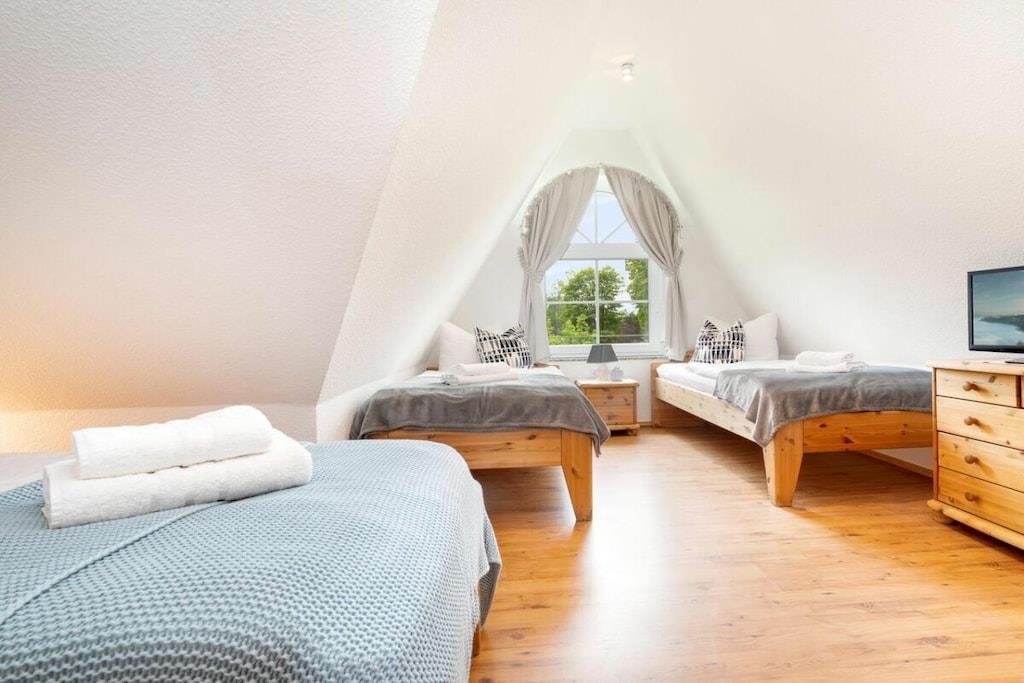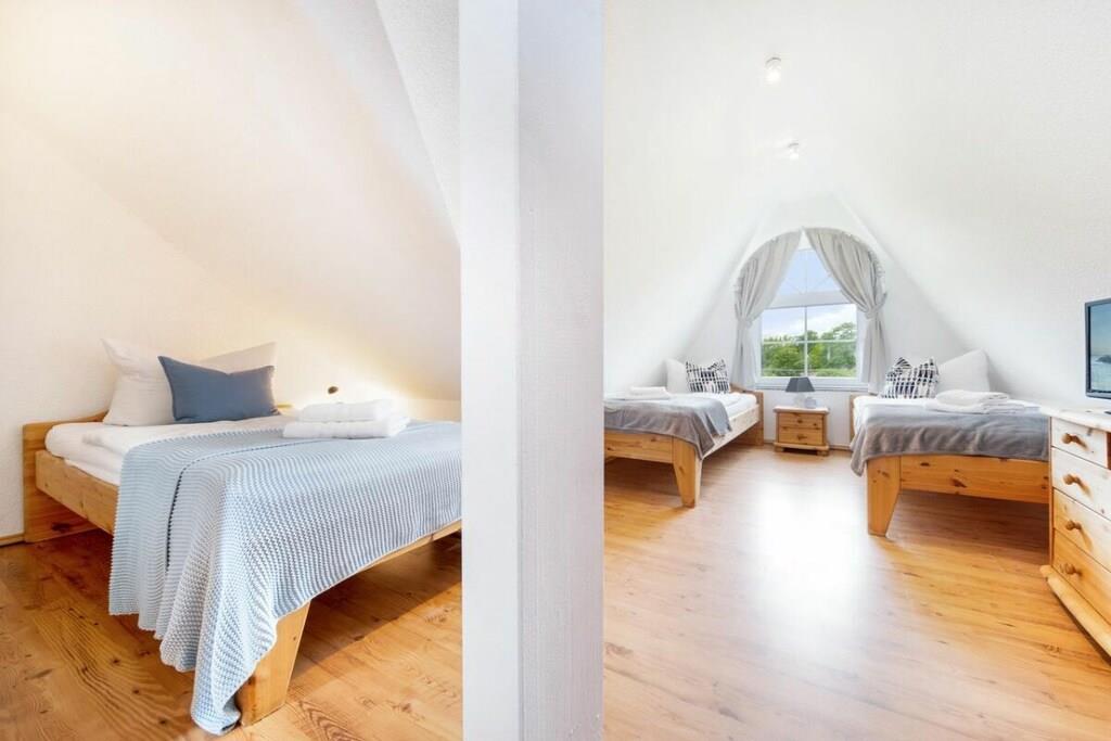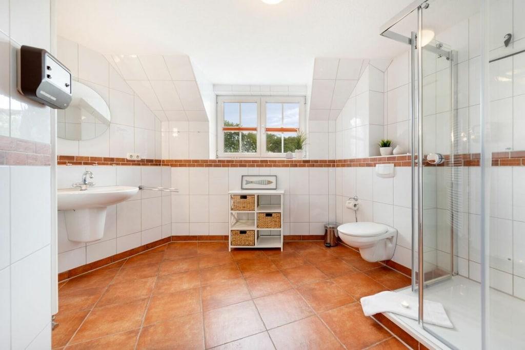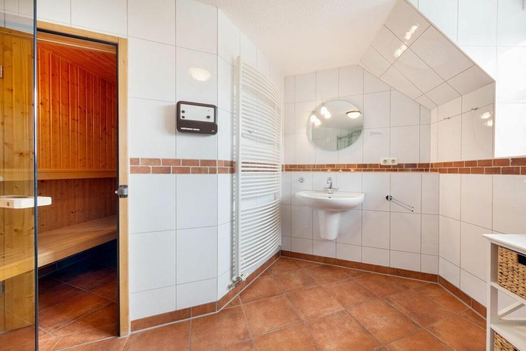 Das Ferienhaus bietet auf ungefähr 115 m² Platz für 7 Personen und glänzt mit Kaminofen, Sauna, Garten inklusive schöner Sonnenterrasse und WLAN. Verbringen Sie wunderbare Tage in Zingst. Der geräumige Wohnbereich ist mit Kaminofen ausgestattet, sodass Sie es sich besonders im Winter richtig gemütlich vor dem TV machen können. Die Küche bietet Platz, um leckere Gerichte zu kochen. 3 Schlafzimmer und 3 Bäder, eines davon mit Sauna sorgen dafür, dass bis zu 3 Familien hier Urlaub machen können. Darüber hinaus erwartet jeden Gast eine kleine Willkommensüberraschung bei der Ankunft!
