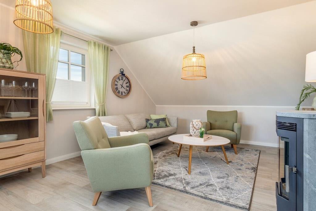 Moderne Ferienwohnung in ruhigem Mehrfamilienhaus mit großer Balkonterrasse und Kamin in Zingst an der Ostsee.