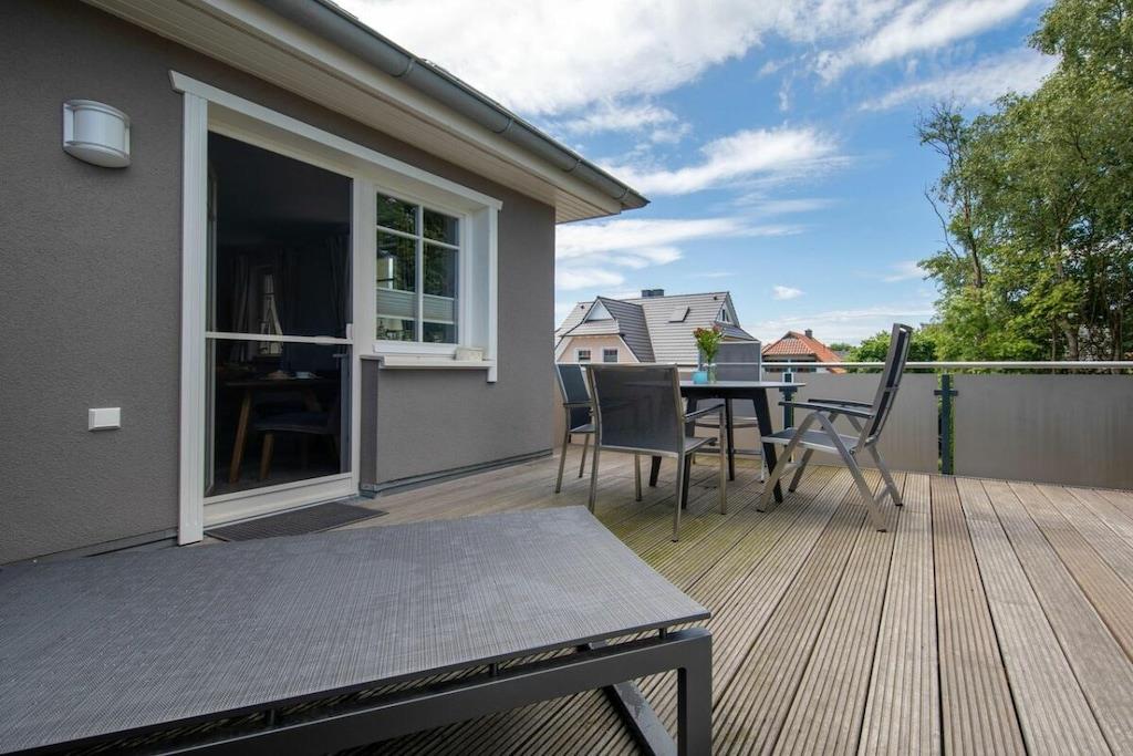 Modernes Ferienhaus in Zingst mit großem Balkon und Kamin für entspannte Ostsee-Tage.