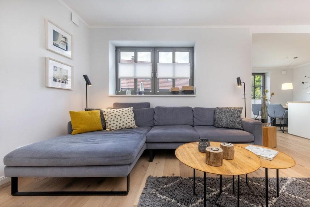 Moderne Ferienwohnung in Zingst mit Strandkorb, Kamin und Terrasse für entspannte Tage am Meer.