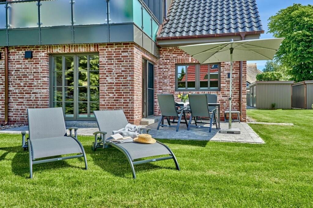 Moderne Ferienwohnung in Zingst mit Terrasse, Kamin und Strandkorb am Meer für erholsame Tage.