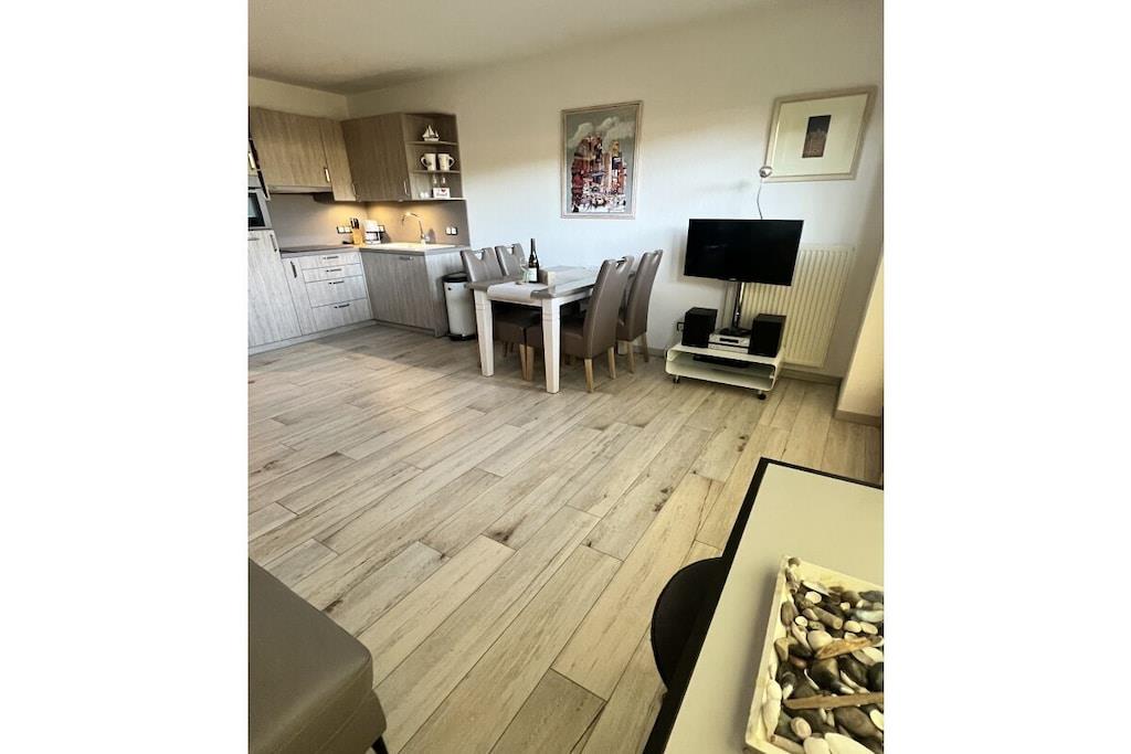 Traumhafte Ferienwohnung im Herzen von Zingst – Perfekt für Ihren Urlaub! Willkommen in Ihrer stilvoll eingerichteten und frisch renovierten Ferienwohnung mitten im wunderschönen Ostseeheilbad Zingst! Die Wohnung ist komplett ausgestattet, inklusive Waschmaschine – Sie brauchen nur noch Ihre Urlaubsgarderobe! Diese charmante 3-Zimmer-Wohnung bietet alles, was Sie für einen erholsamen Urlaub brauchen: - 2 gemütliche Schlafzimmer: Elternschlafzimmer mit großem Doppelbett, Kinderzimmer mit stabilem Etagenbett – auch für Erwachsene geeignet - Einladender Wohn-/Essbereich mit offener Küche inkl. vollständiger Ausstattung: Filterkaffeemaschine / Toaster / Wasserkocher / Besteck usw. - Modernes Badezimmer: barrierefreier Zugang - Sonnige Süd-Terrasse: ideal zum Frühstücken, Sonnenbaden, Entspannen oder Grillen Ob Familienurlaub, Auszeit zu zweit oder Aktivurlaub – diese Ferienwohnung ist der perfekte Ausgangspunkt für unvergessliche Tage an der Ostsee. Jetzt buchen und den Zauber von Zingst erleben.