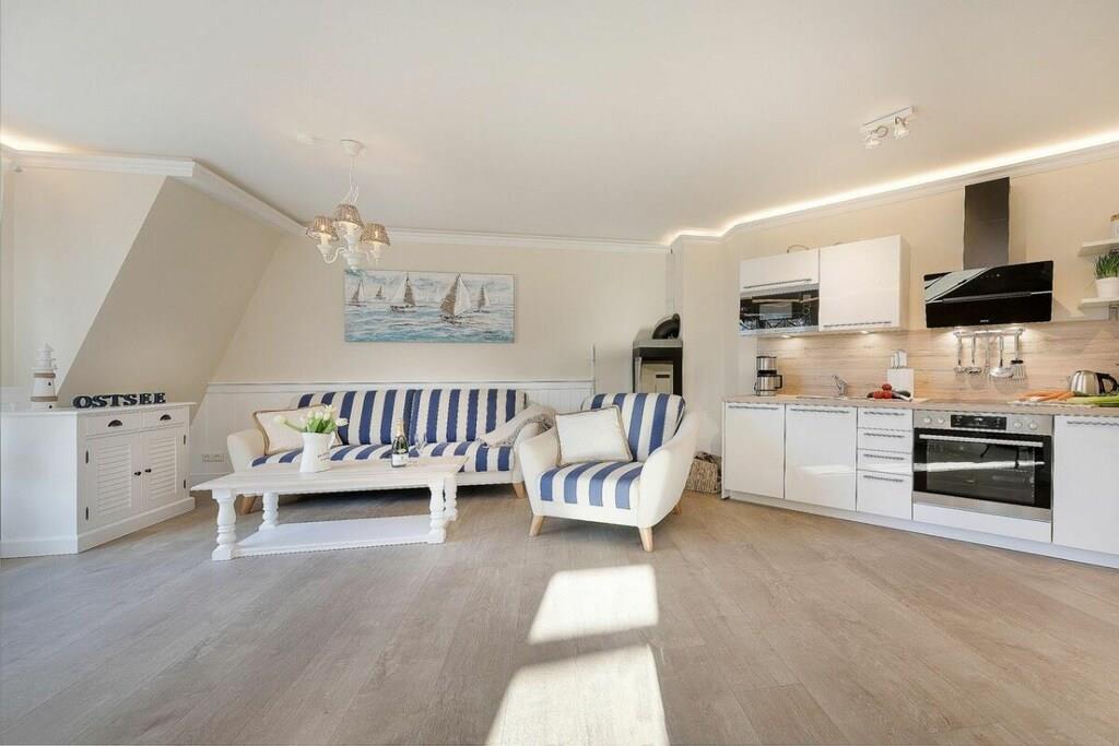 Die Villa Strandblick im Ostseeheilbad Zingst bietet Ihnen eine einzigartige Ferienwohnung in 1.Reihe am Strand mit Meerblick. Auch unsere Gäste mit Bewegungseinschränkungen stehen alle Bereiche der Villa Strandblick offen. Ob Sie eine Ferienwohnung mit Meerblick im Dachgeschoss buchen oder den Wellnessbereich nutzen möchten, Sie können alles problemlos mit dem Fahrstuhl erreichen. Alle Ferienwohnungen sind durch die breiten Türen auch gut nutzbar für Rollstuhlfahrer . In dieser 3 Raumwohnung mit großem Balkon und seitl. Meerblick (nicht in er Saison) finden Sie alles, was Sie sich im Urlaub wünschen. Sie können Luxus pur genießen, denn die Ferienwohnung ist mit einem Kamin ausgestattet. Nach langen Strandspaziergängen entspannen Sie im kleinem aber feinem Wellnessbereich, welcher sich im Dachgeschoss befindet. Dort können Sie in der Sauna mit Saunafenster entspannen oder Sie machen sich Ihren Kamin in Ihrer Wohnung an. Familiengeführtes Unternehmen, mit viel Liebe maritim eingerichtet. Morgens im Bademantel an den Strand und eine Runde in den Sonnenaufgang schwimmen. Anschließend können Sie sich Ihre Brötchen direkt vom mobilen Bäckerwagen vor der Tür holen (nur in der Saison). In der Ferienwohnung befindet sich eine voll ausgestattete moderne Küchen mit Geschirrspüler, Dunstabzugshaube, Herd, eben allem was das Küchenherz so braucht. In jedem Schlafzimmer befindet sich ein weiterer Flat-TV. Das Bad sind ist mit einer ebenerdigen Dusche, Fußbodenheizung und Wellnessdusche ausgestattet. Die Ferienwohnung hat im Wohnbereich indirekte Beleuchtung in den Stuckleisten, um Ihnen die Abendstunden gemütlich zu machen. In der Villa Strandblick erwartet Sie eine familiäre Betreuung. Wir organisieren Ihnen schon vor Ihrer Anreise, Freizeitausflüge, Konzerte, Massagen, Kranichtouren, Segelausflüge. Das Zentrum erreichen Sie nach wenigen Minuten am Strand entlang. Wir freuen uns, Sie in unserer Villa Strandblick begrüßen zu dürfen und Ihnen einen unvergesslichen Urlaub zu bereiten. Ihre Familie von Klitzing