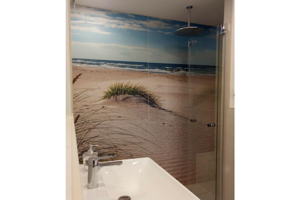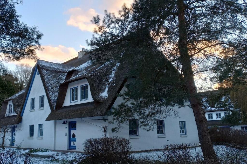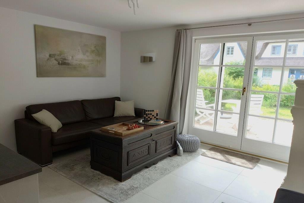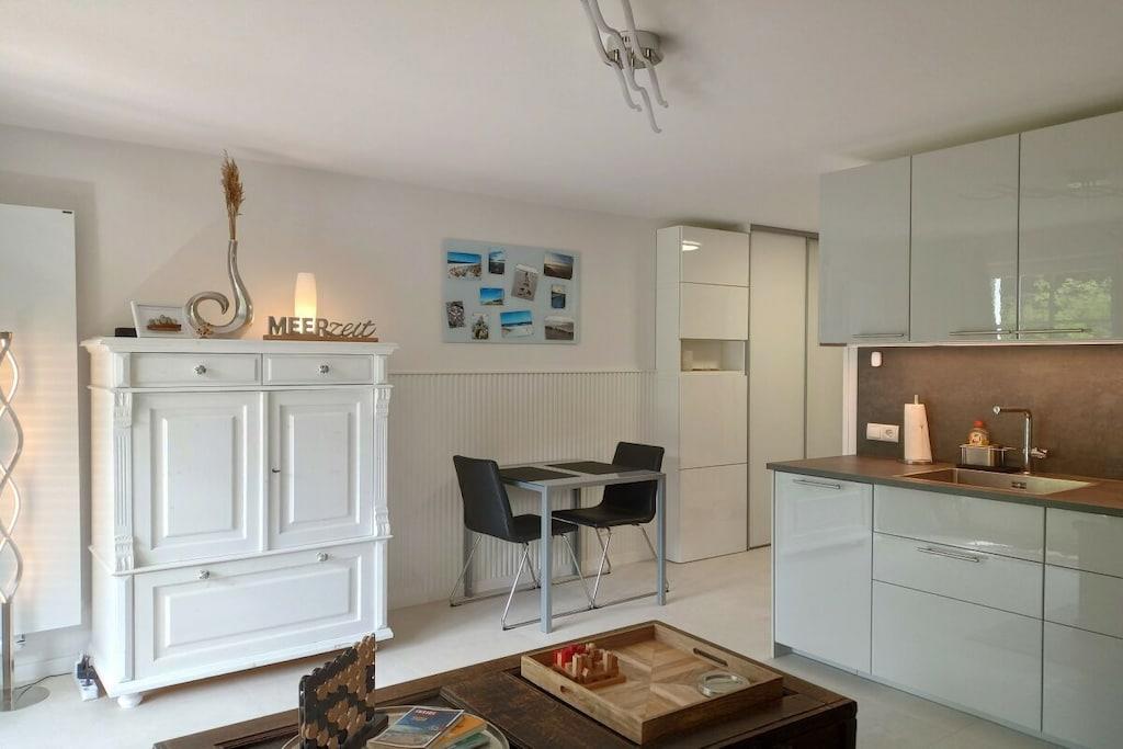 Die modere Ferienwohnung "Meerzeit" gehört zur ruhigen Ferienhausanlage "Achtern Diek", direkt neben dem Osterwald. In 5 gemütlichen Gehminuten ist hinter dem Deich der weitläufige Strand erreichbar, der zu langen Spaziergängen, Sonnenbaden, Schwimmen im flachen Meer oder zum Verweilen einlädt, bis die Sonne im Meer versinkt. Die helle Wohnung mit Terrasse bietet ein modernes Bad mit bodenebener Regendusche, eine neue Küche mit Geschirrspüler und kombiniertem Mikrowellenbackofen sowie kostenloses WLAN und ist mit seinen sehr kurzen Wegen zum Strand und Wald ein perfekter Ausgangspunkt für einen erholsamen Urlaub in der wunderschönen Urlaubsregion in Zingst. Ankommen - kostenloses Parken direkt vor dem Haus - ganz kurzer Weg zum Strand = Die Meerzeit kann beginnen! Wäschepakete können optional gebucht werden und enthalten: - Bettzeug für Decke und Kissen + Spannbettlaken (inkl. Be- und Abziehen) - 1 Handtuch groß - 1 Handtuch klein -2 Geschirrhandtücher Eigenständiger Check-In über Schlüsselbox, Kurkarten werden vorab übermittelt. Kosten für Strom, Heizung, Wasser und Endreinigung sind im Mietpreis enthalten.