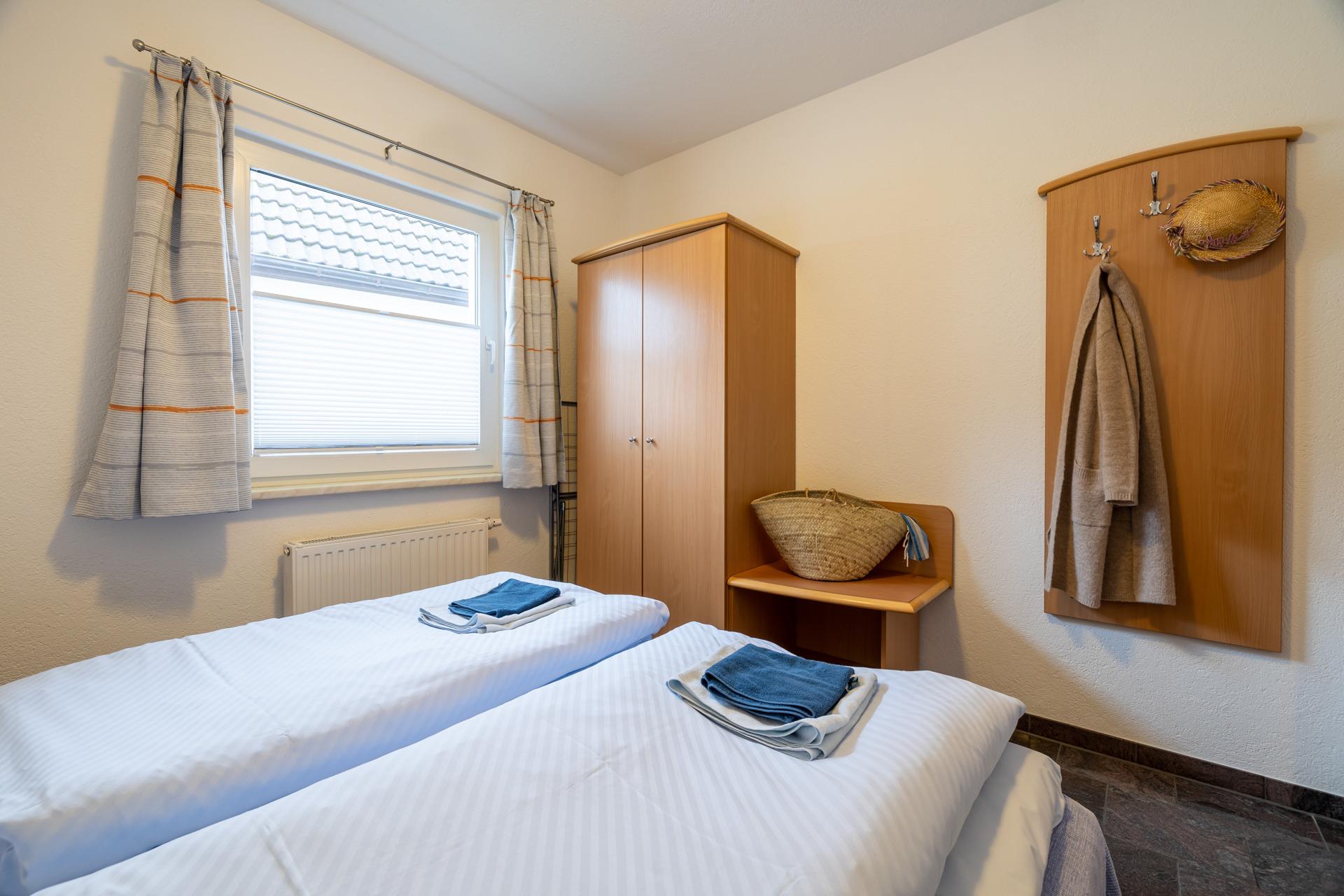 Schlafzimmer: Zwei komfortable Schlafzimmer mit einem Doppelbett und 2 Einzelbetten, weichen Bettwaren und bezogenen Betten.
