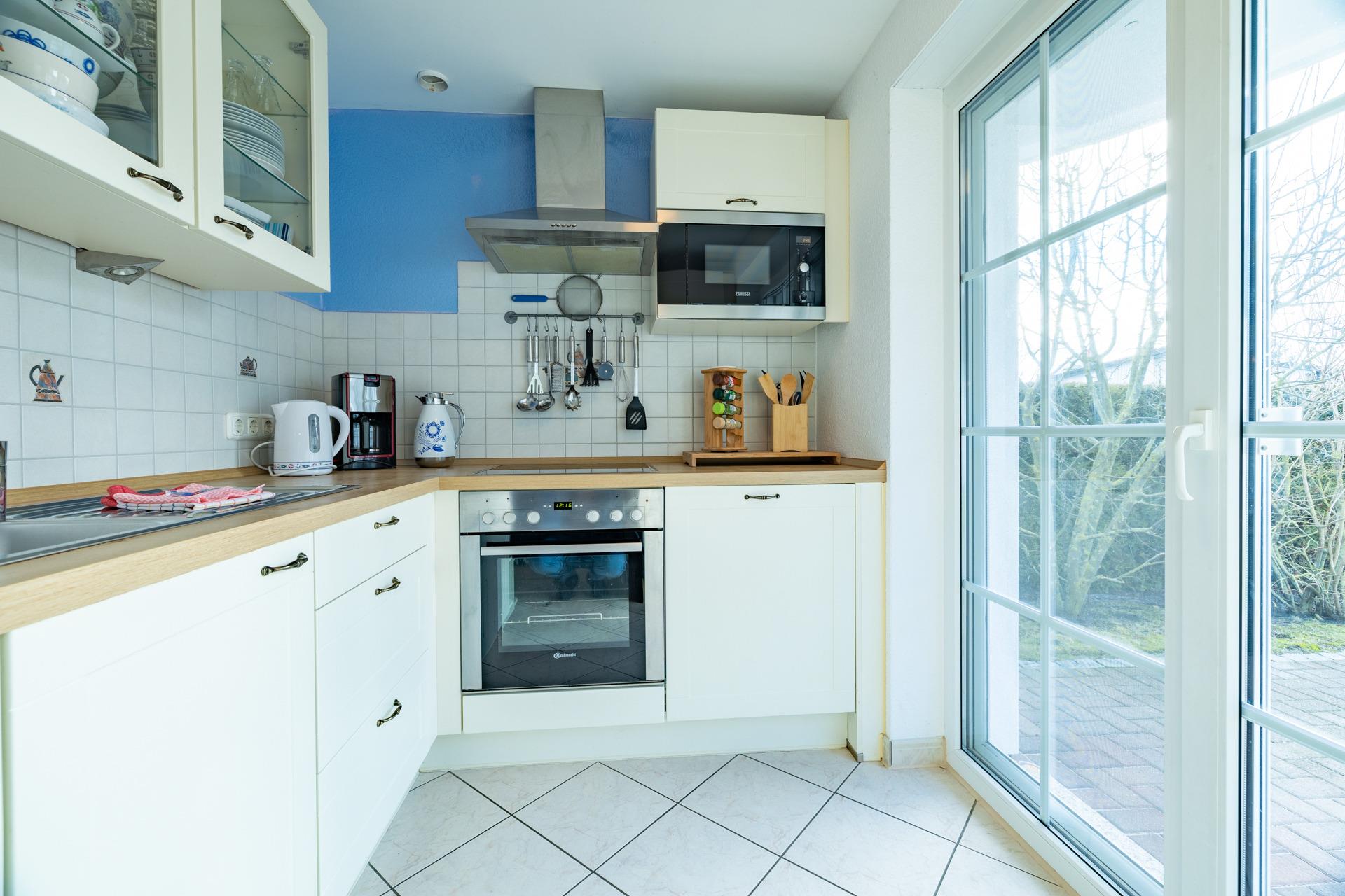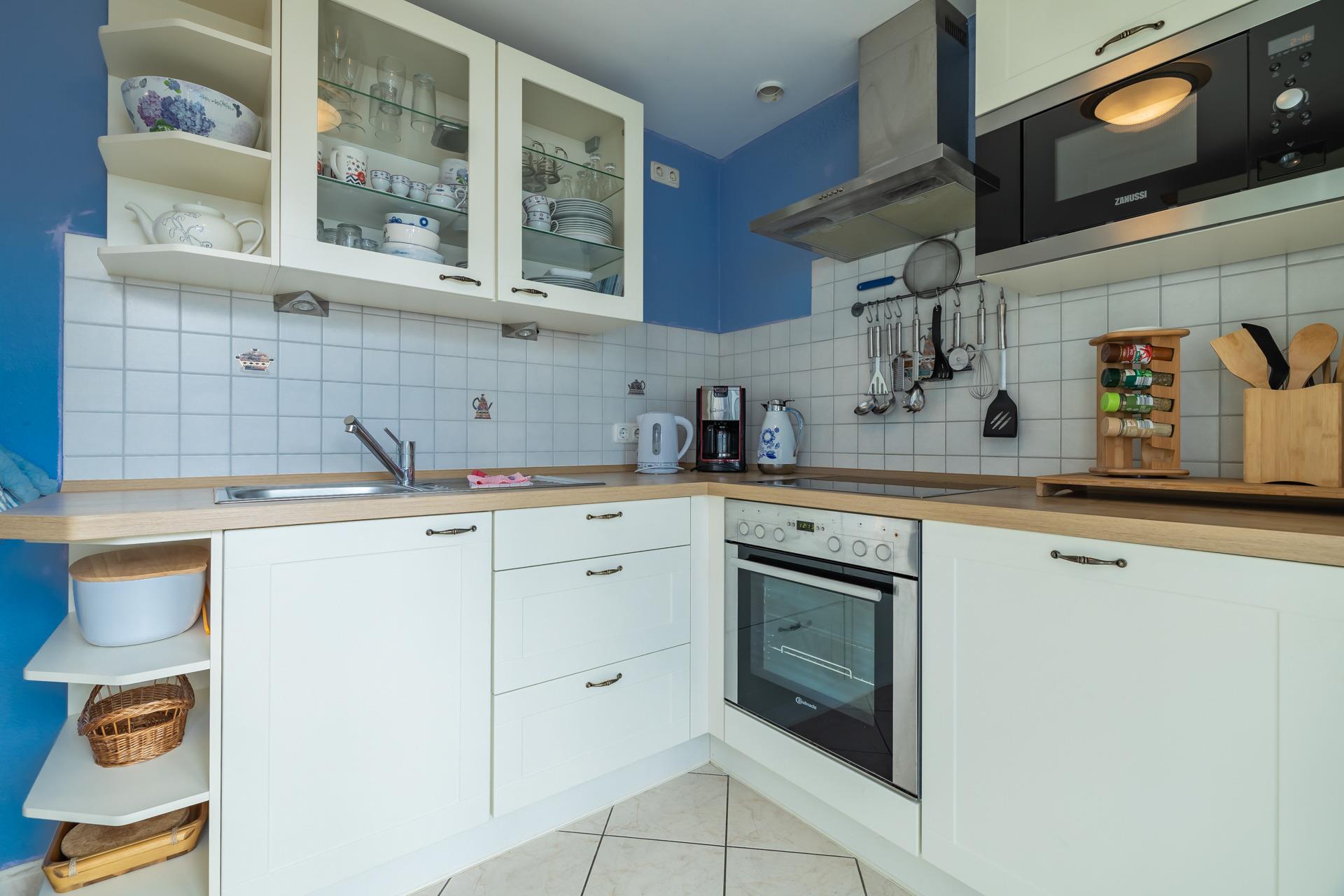 Die toll ausgestattete Küche bietet nicht nur einen Kühlschrank und Ofen, sondern auch eine Mikrowelle und Kaffeemaschine!