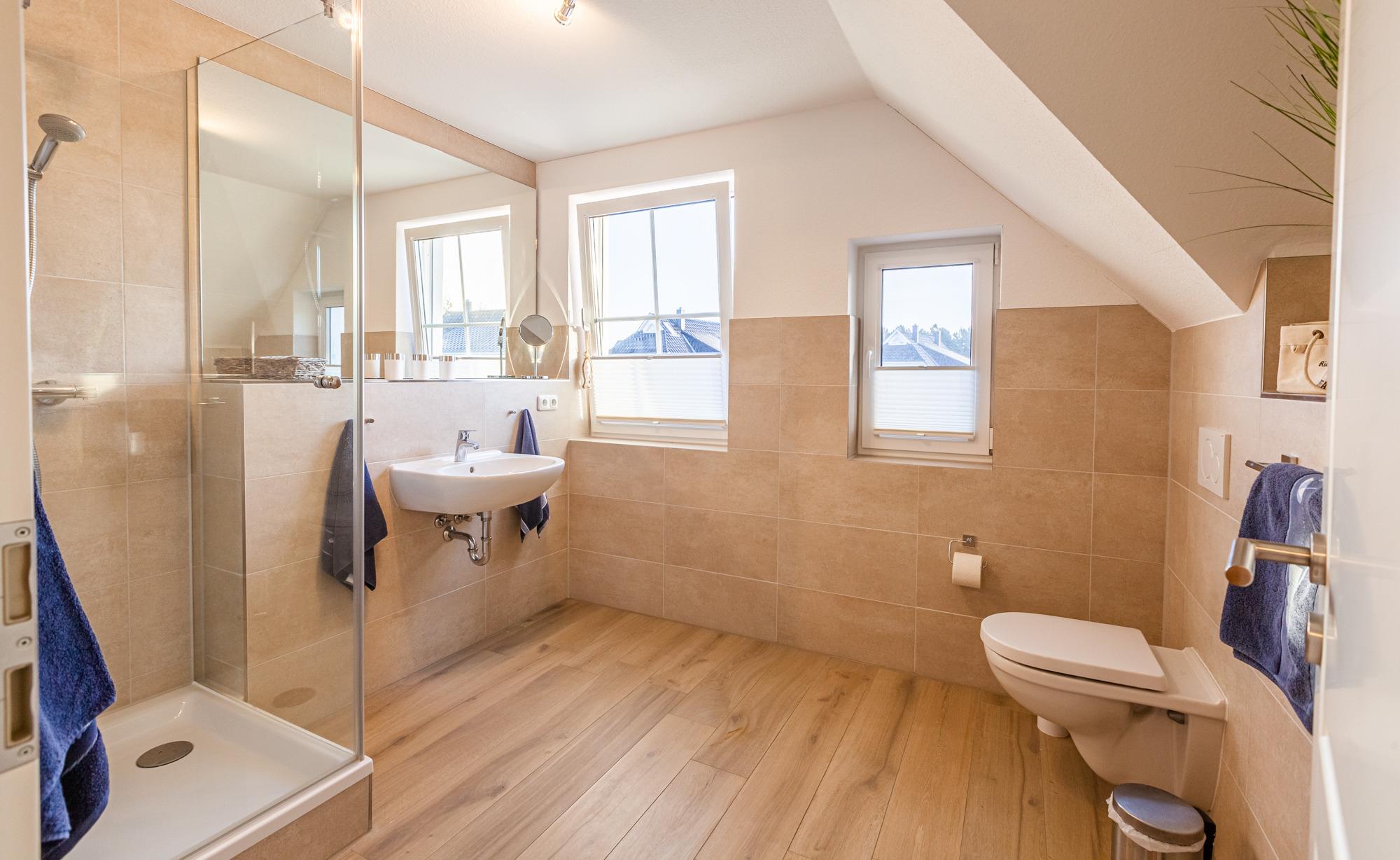 1 x bodengleiche Dusche / WC). Zur weiteren Einrichtung gehören zwei LCD-TV´s mit SAT-TV und WLan im ganzen Haus, Fußbodenheizung und Fliegenschutzgitter, Waschmaschine, Wäschetrockner, ein Kinderreisebett und Kinderhochstuhl. Eine Terrasse mit Gartenmöbeln, ein Grill sowie ein eigener Garten. Zwei Pkw-Stellplätze, ein Fahrradabstellraum, stehen Ihnen zur Verfügung. Die Entfernung zum Strand beträgt ca. 900 Meter und zum Zentrum sind es ca. 10 Minuten Fußweg. Kinderspielplätze befinden sich in unmittelbarer Umgebung. Haustiere (Hund, Katze, etc.) sind in diesem Haus nicht gestattet.