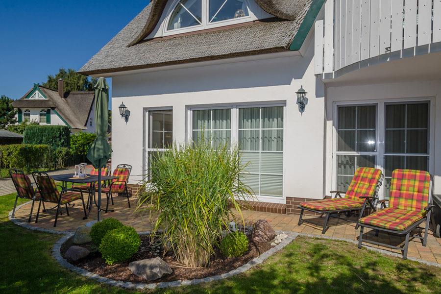 Komfortable Erdgeschosswohnung in Zingst mit Kamin, Sauna und großer Terrasse nahe dem Strand.