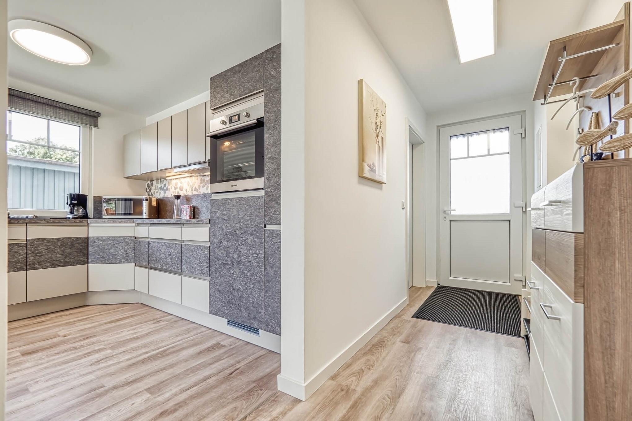 Ceranfeld und Kühlschrank integriert. Die Küche bietet eine Vollausstattung zur Selbstverpflegung.