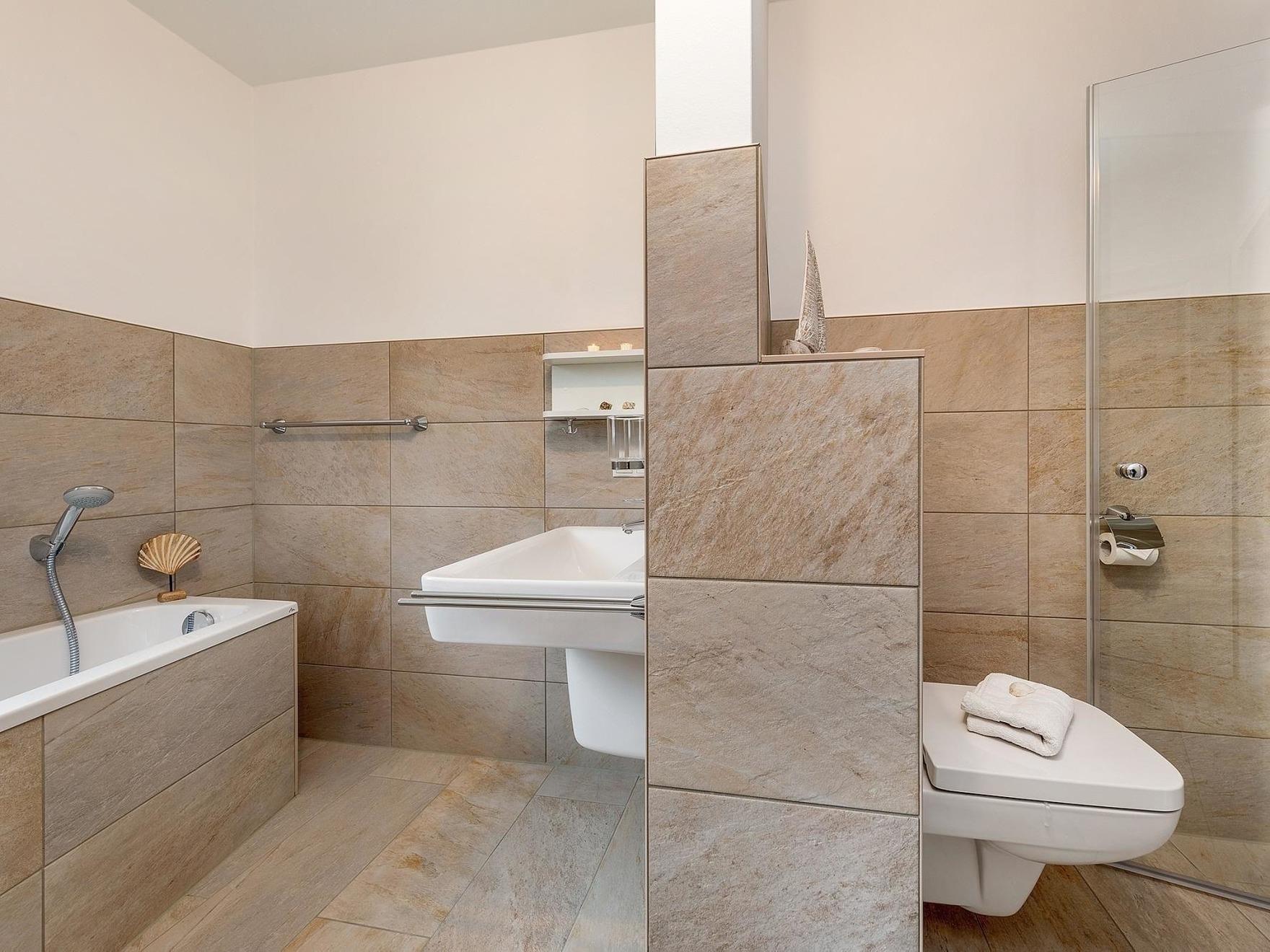 Das Badezimmer beeindruckt mit einer bodengleichen Dusche, einer Badewanne, einem Haartrockner und einem Kosmetikspiegel. Ein Wohnbereich mit TV und HiFi-Anlage sorgt für entspannte Stunden. Die Fußbodenheizung und die Heizung garantieren behagliche Temperaturen. Weitere Annehmlichkeiten wie eine Waschmaschine, ein Parkplatz und Fliegengitter stehen zur Verfügung, um den Aufenthalt so angenehm wie möglich zu gestalten.