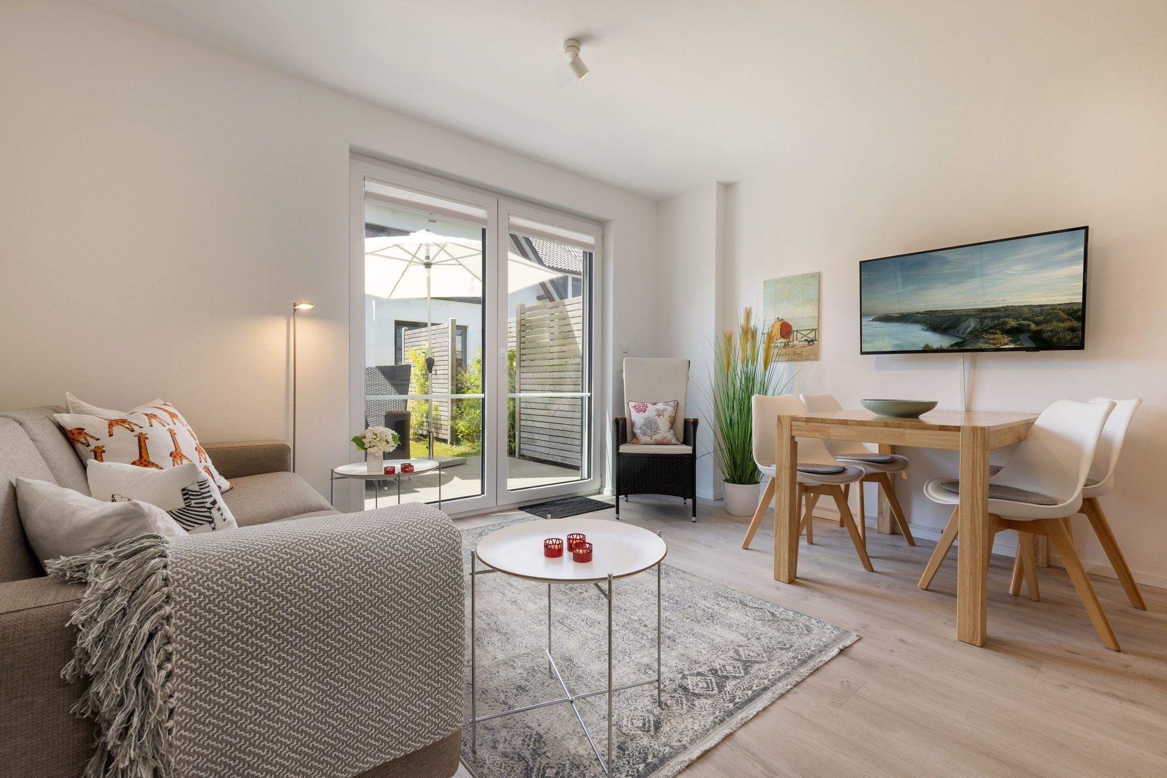 Gemütliche Ferienwohnung in Zingst mit Terrasse, moderner Küche und Nähe zum Strand bietet perfekte Erholung für zwei Personen.