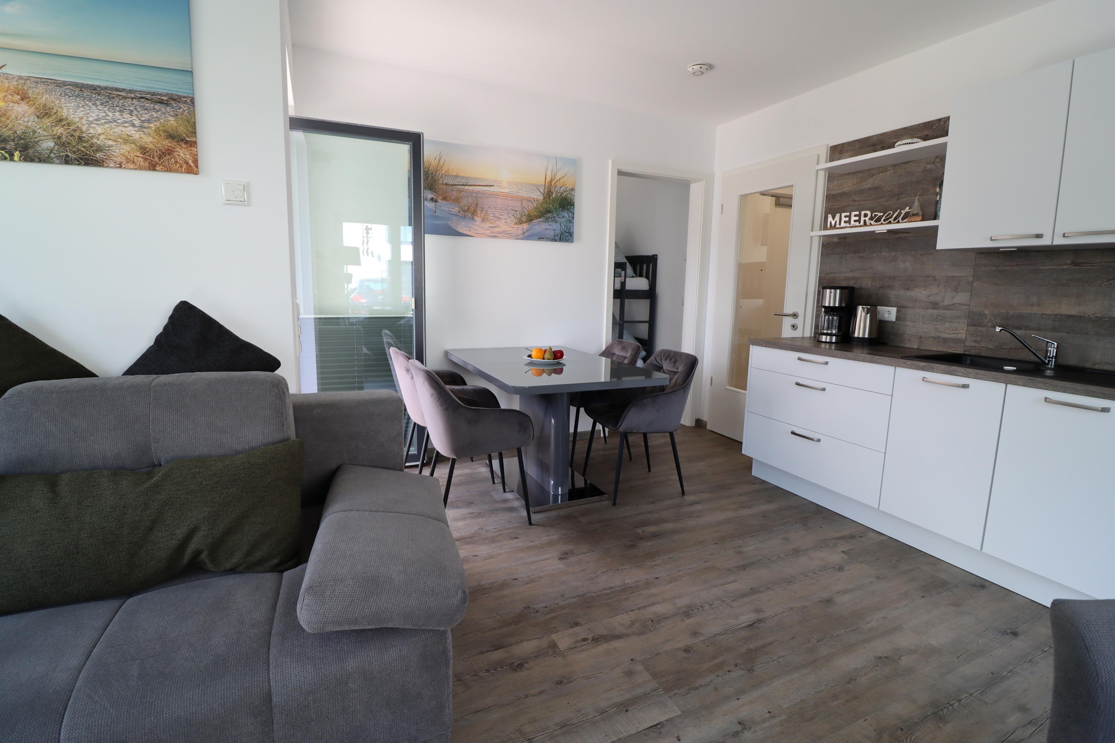 Die 3-Raum-Ferienwohnung bietet auf ca.48qm ausreichend Platz für 4 Personen + Kleinkind.In dem gemütlich eingerichtetem Wohnzimmer stehen Ihnen ein TV zur Verfügung.Von hier haben Sie einen direkten Zugang zur sonnigen Terrasse mit bequemen Gartenmöbeln,wo Sie einen schönen Strandtag ausklingen lassen können.Auf gleicher Ebene befindet sich die offene Küche und das Kinderzimmer.