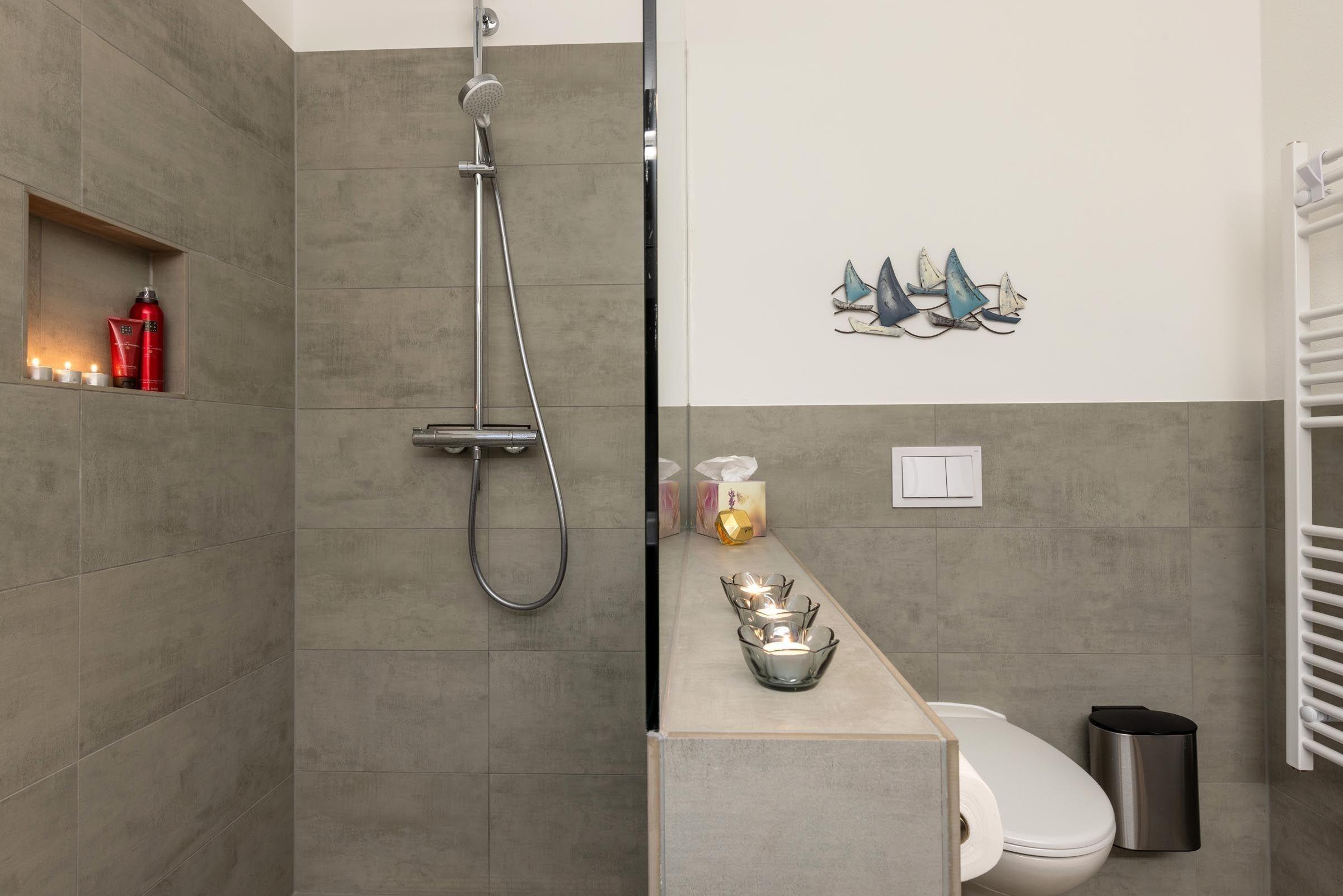 Das Schlafzimmer ist mit einem Doppelbett ausgestattet und bietet einen Rückzugsort zum Erholen. Das Badezimmer verfügt über eine bodengleiche Dusche, einen Haartrockner und einen Kosmetikspiegel. Weitere Annehmlichkeiten wie WLAN, TV, eine HiFi-Anlage sowie eine Waschmaschine und ein Wäschetrockner runden das Angebot ab. Allergikerfreundliche Ausstattung, Fliegengitter und Parkmöglichkeiten sorgen für zusätzlichen Komfort. Brettspiele und gemütliche Einrichtung bieten die perfekte Grundlage für entspannte Urlaubstage.