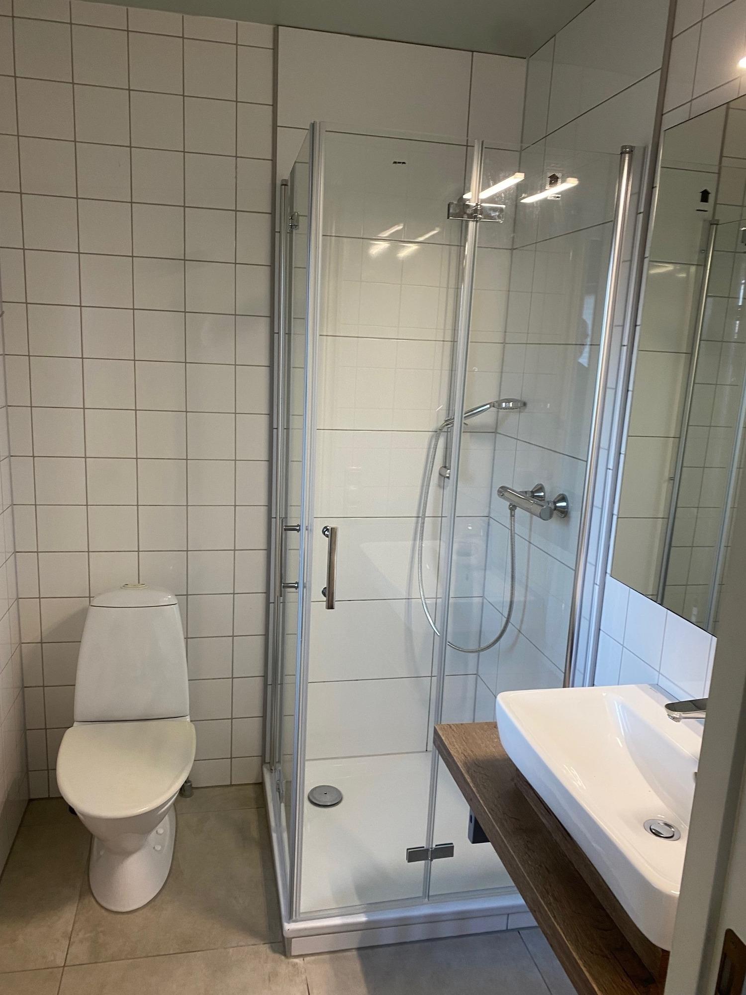 Im Erdgeschoß befindet sich ein Duschbad mit WC und Waschbecken.