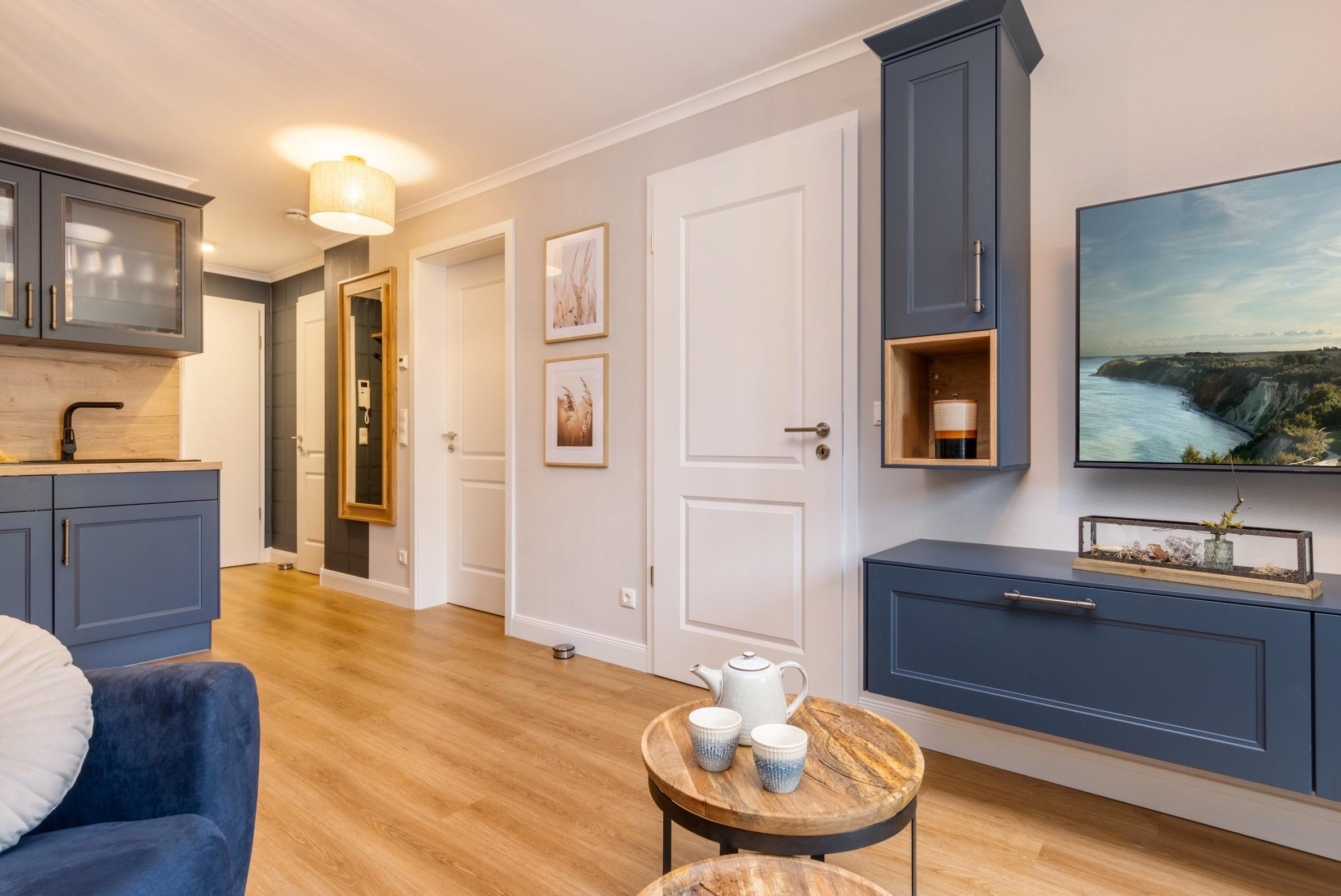 Das Wohnzimmer lädt mit großen Flat TV zum gemütlichen Verweilen ein.