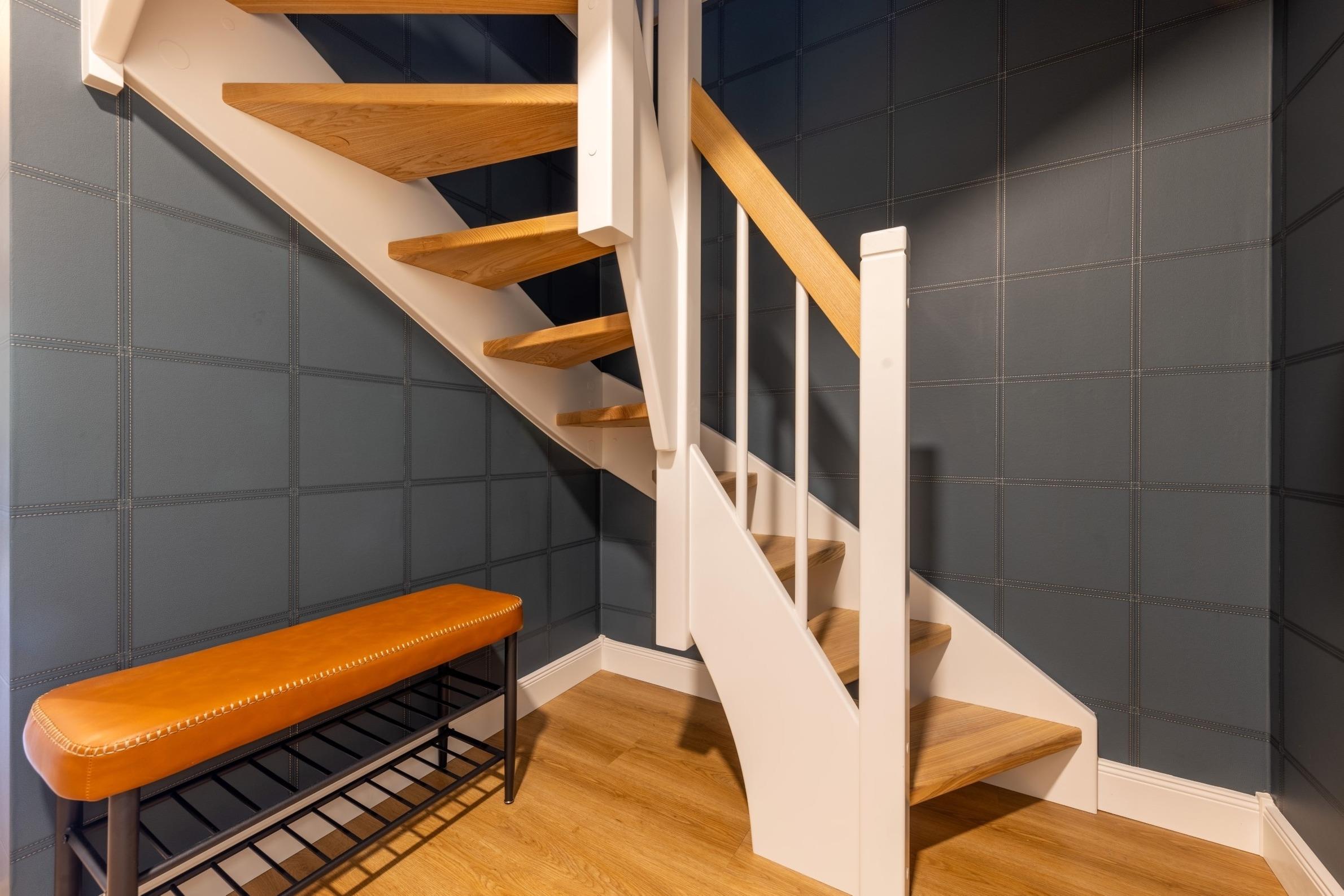 Vom Flur gelangt man über eine schmale Treppe zum Kinderzimmer im Dachgeschoss.