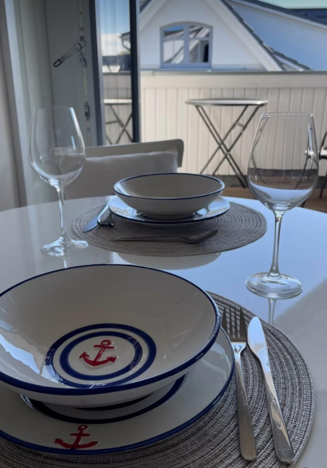 Küchenbereich, ein Schlafzimmer mit Boxspringbett und ein Badezimmer mit elektrischem Dachfenster und Fußbodenheizung. Der überdachte Balkon nach Osten ist mit Stühlen und einem Essplatz ausgestattet. Für Ihren PKW gibt es direkt auf dem Grundstück einen nummerierten Stellplatz.