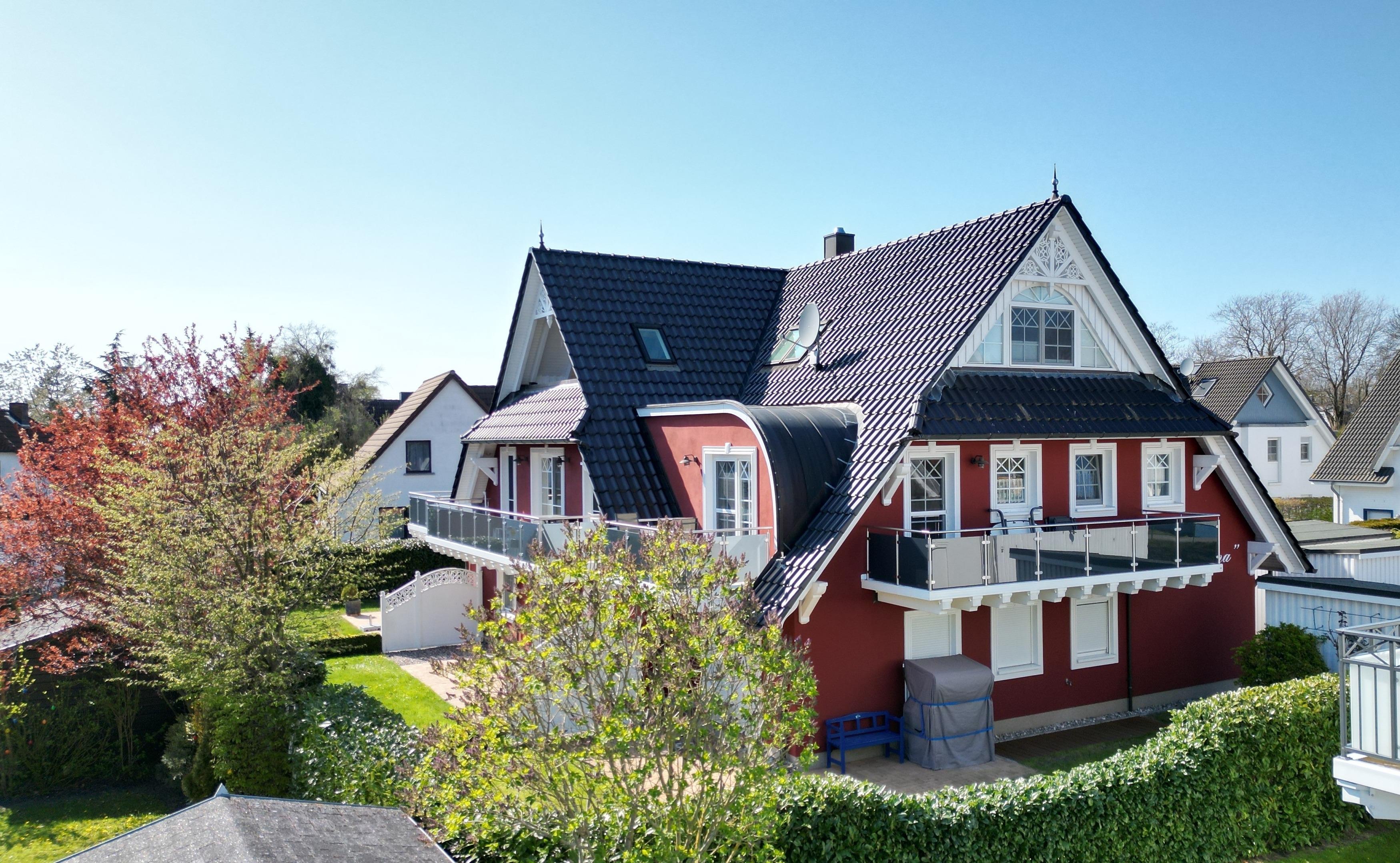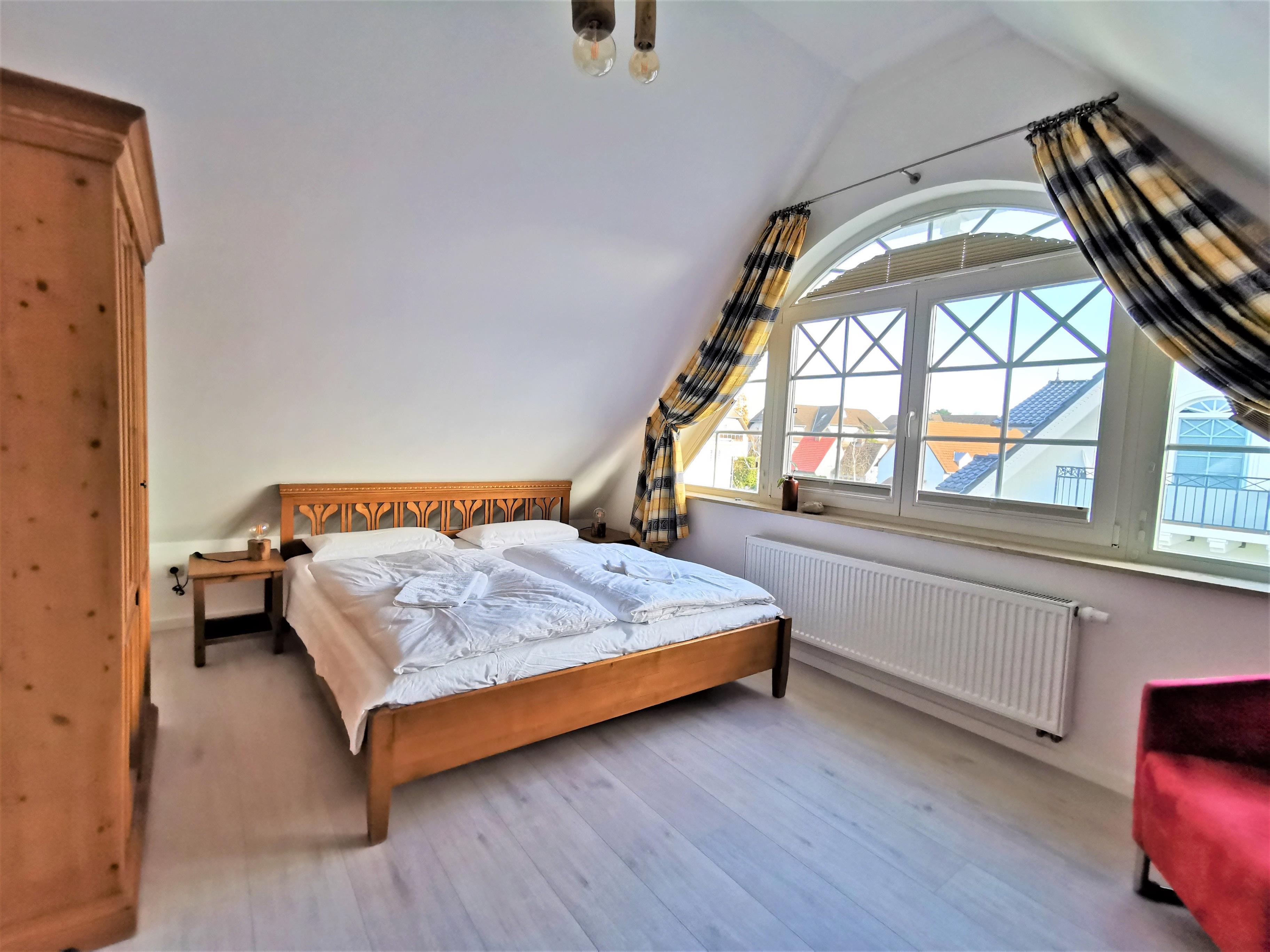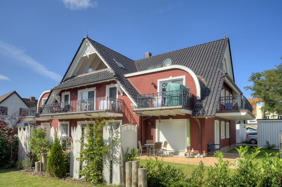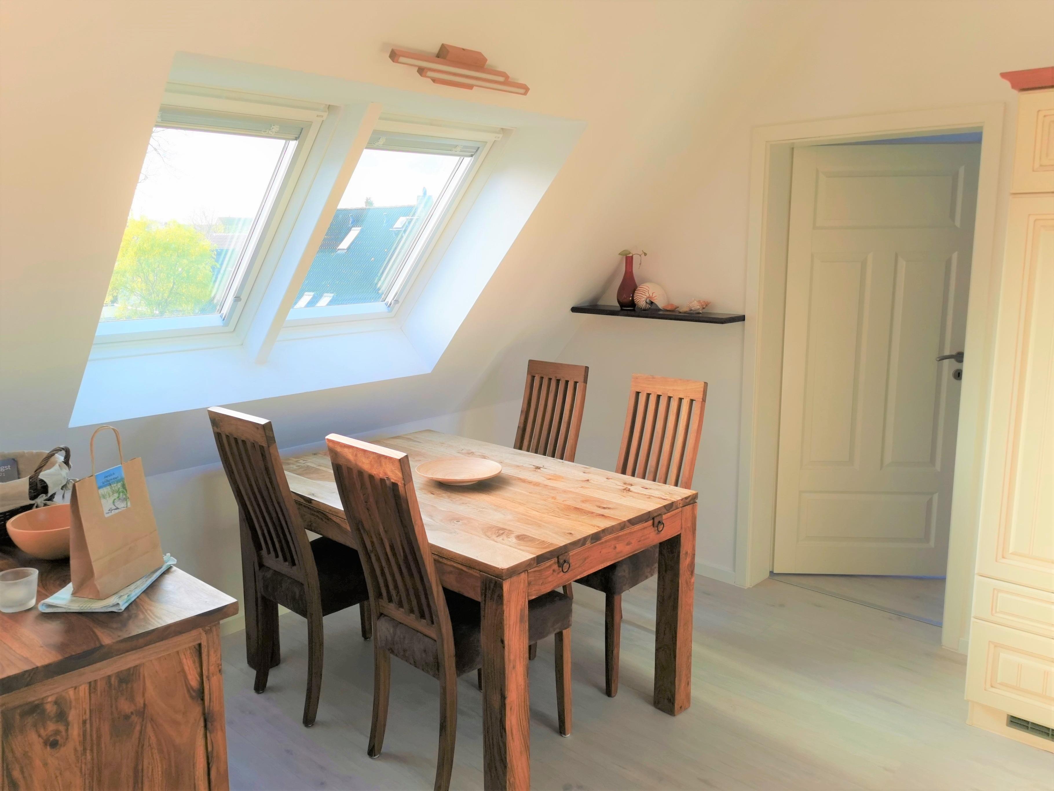 Gemütliche, helle und hochwertig eingerichtete Ferienwohnung (70 qm, Dachgeschoss) in einem Haus im Darßer Stil mit 7 Wohneinheiten, Bj. 2009, in Strandnähe (150 m).