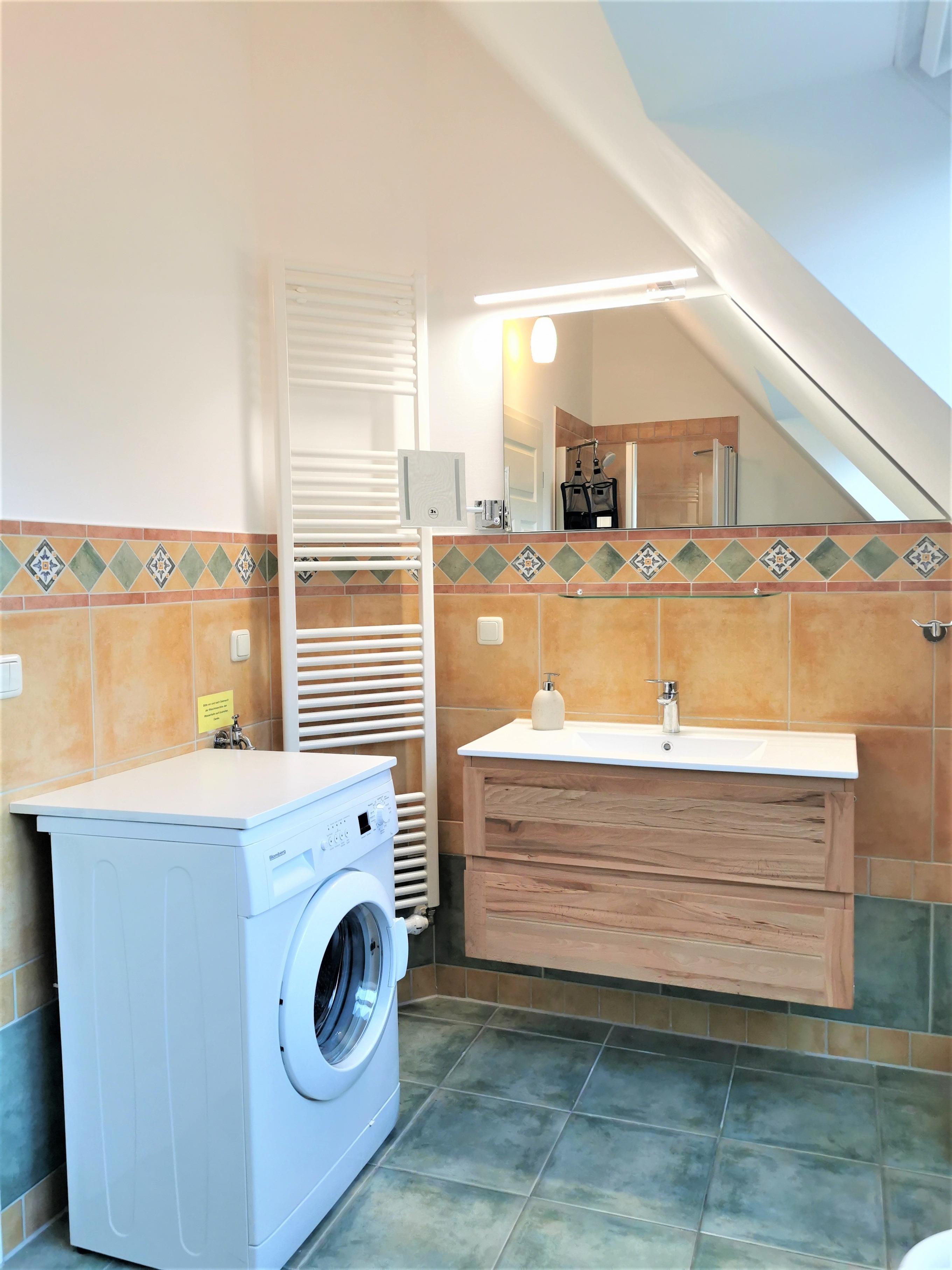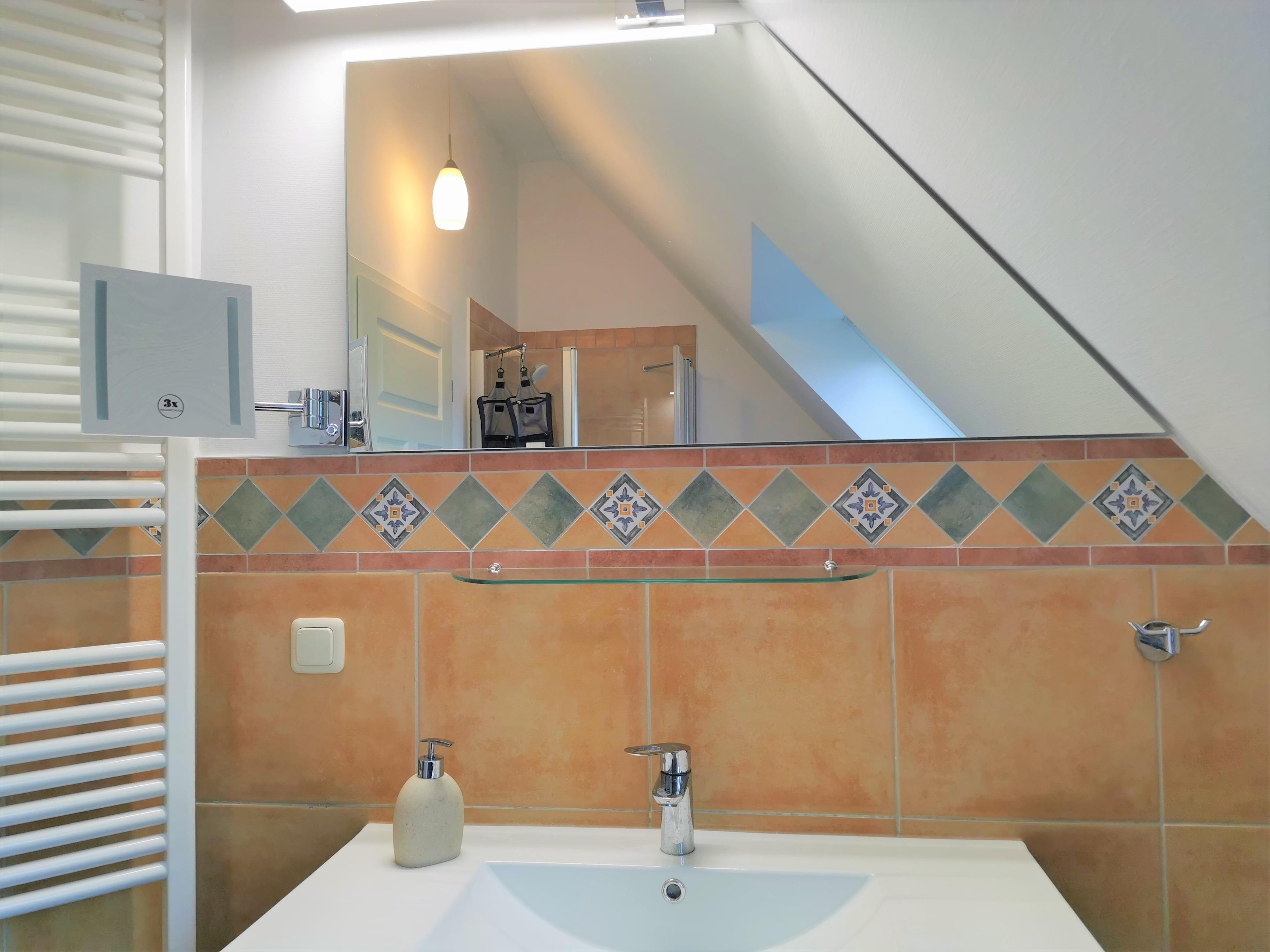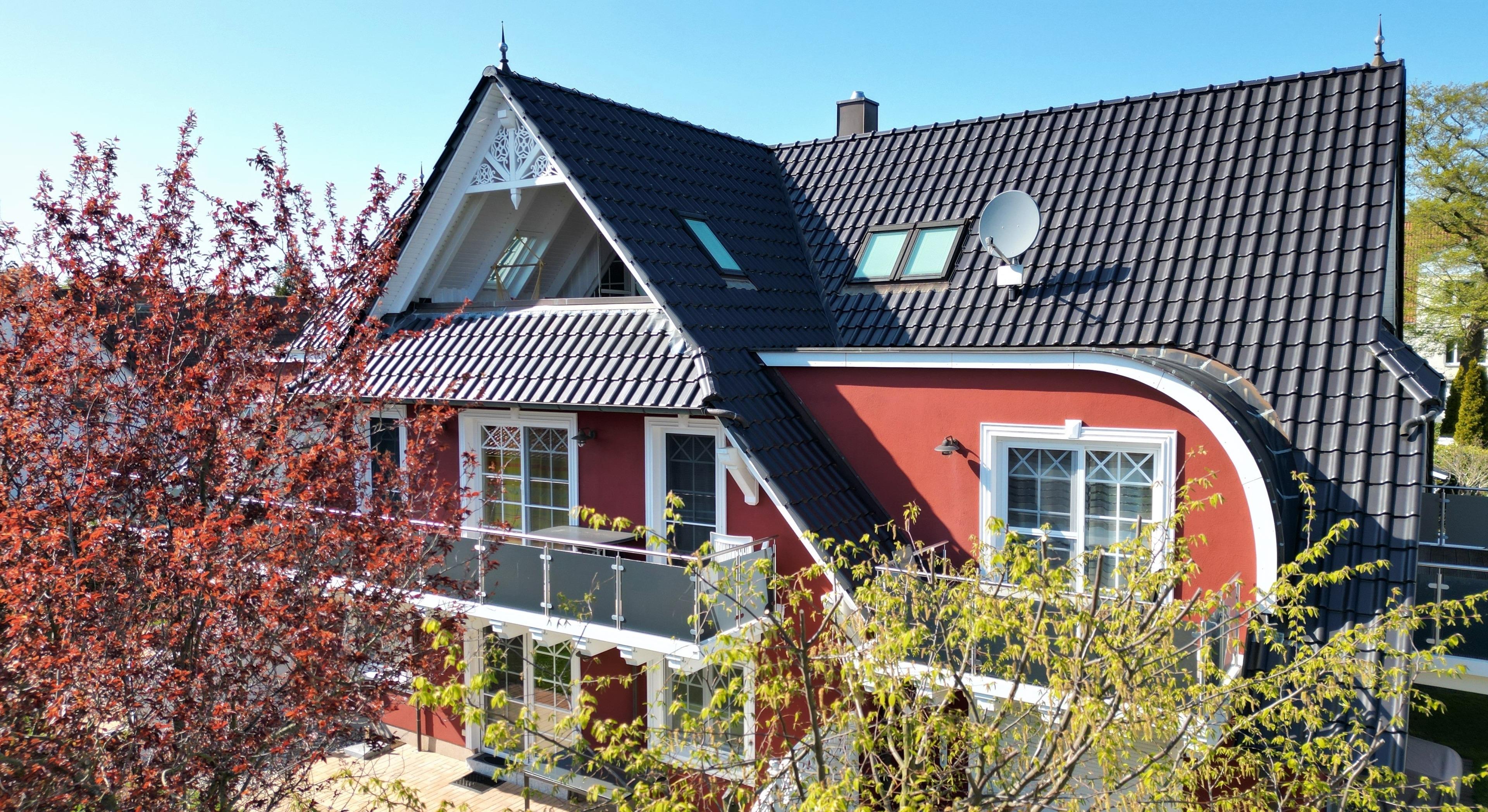 Gemütliche, helle und hochwertig eingerichtete Ferienwohnung (70 qm, Dachgeschoss) in einem Haus im Darßer Stil mit 7 Wohneinheiten, Bj. 2009, in Strandnähe (150 m).