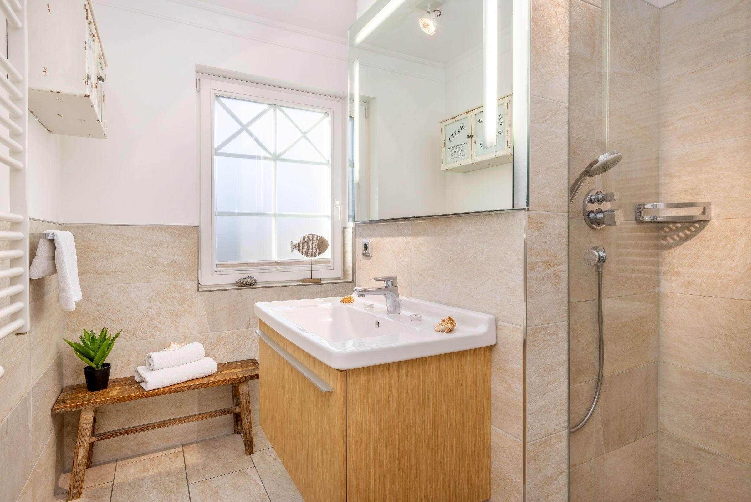 Die Wohnung „Whg. Dynamique“ in Zingst bietet auf 55 m² modernen Komfort für bis zu drei Personen. Der offene Wohn- und Essbereich zeichnet sich durch ein hochwertiges Sofa, das auch als Schlafsofa (150x200) genutzt werden kann, sowie eine digitale Unterhaltungsausstattung mit Fernseher, HiFi-Anlage und Blu-ray-Spieler aus. Eine moderne, allergikerfreundliche Ausstattung wird durch Fliesenböden und Fliegengitter ergänzt. Die voll ausgestattete Küche mit Induktionsherd, Backofen, Kühlschrank mit Gefrierfach und Geschirrspüler lädt zu gemeinsamen Kochabenden ein. Im separaten Schlafzimmer steht ein Doppelbett (180x200) und ein großer Kleiderschrank zur Verfügung. Das Badezimmer ist mit einer bodengleichen Dusche ausgestattet. Zudem bietet die Wohnung eine Nutzungsmöglichkeit für eine Waschmaschine und einen Fahrradabstellraum mit Lademöglichkeit für E-Bikes in der Tiefgarage.