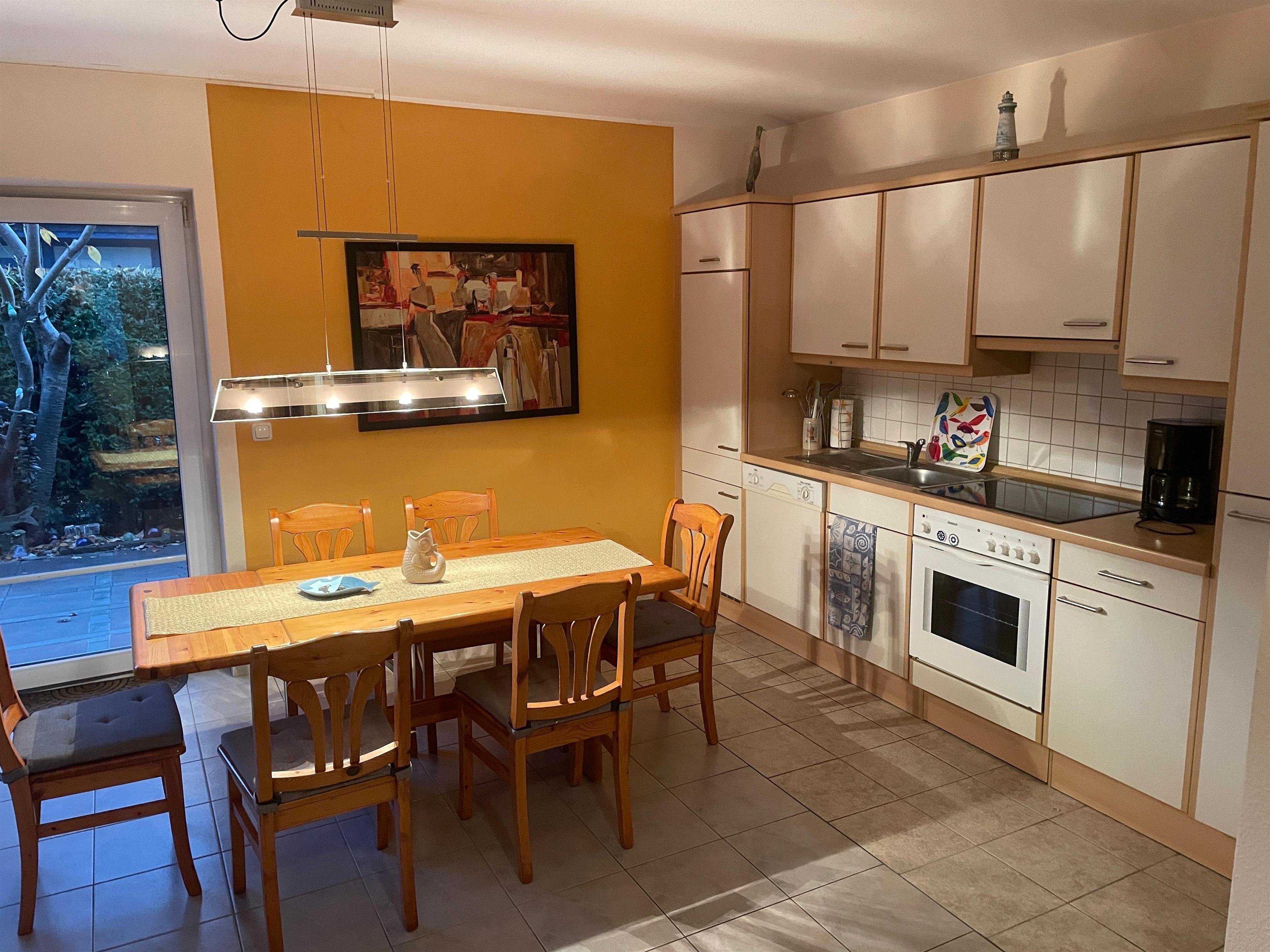 Der großzügige Wohnbereich mit offener Küche bildet das Herzstück der Wohnung. Hier können Sie gemeinsam kochen, entspannen und den Urlaubstag gemütlich ausklingen lassen. Die offene Küche ist funktional ausgestattet und bietet alles, was Sie für die Selbstversorgung benötigen.
