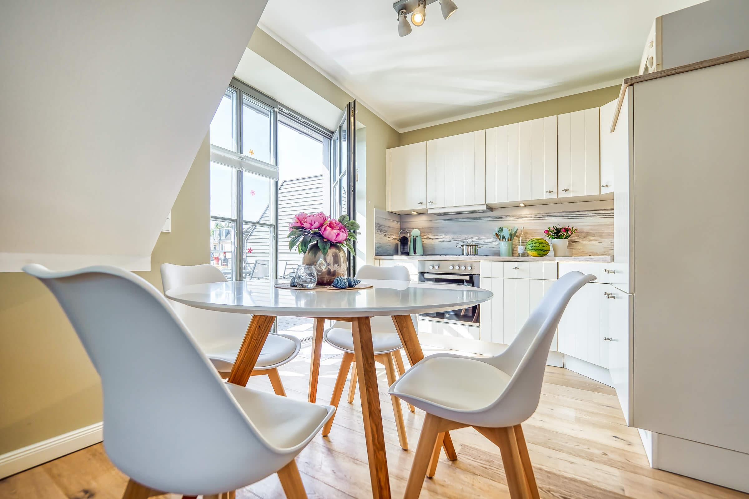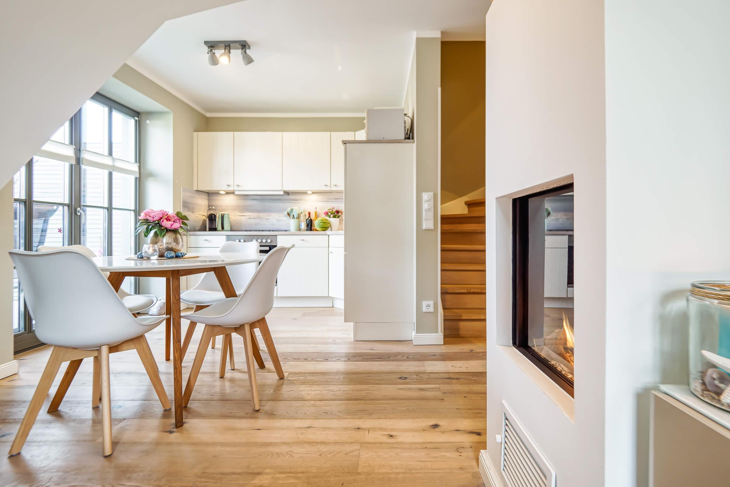 Die lichtdurchflutete Ferienwohnung empfängt Sie mit einer modernen und gemütlichen Atmosphäre. Der offene Wohn- und Essbereich mit Gaskamin bildet das Herzstück der Wohnung und lädt zu entspannten Abenden ein – ob bei einem guten Buch oder einem gemeinsamen Spieleabend. Die voll ausgestattete Küche bietet alles, um leckere Mahlzeiten für Ihre Liebsten zuzubereiten.