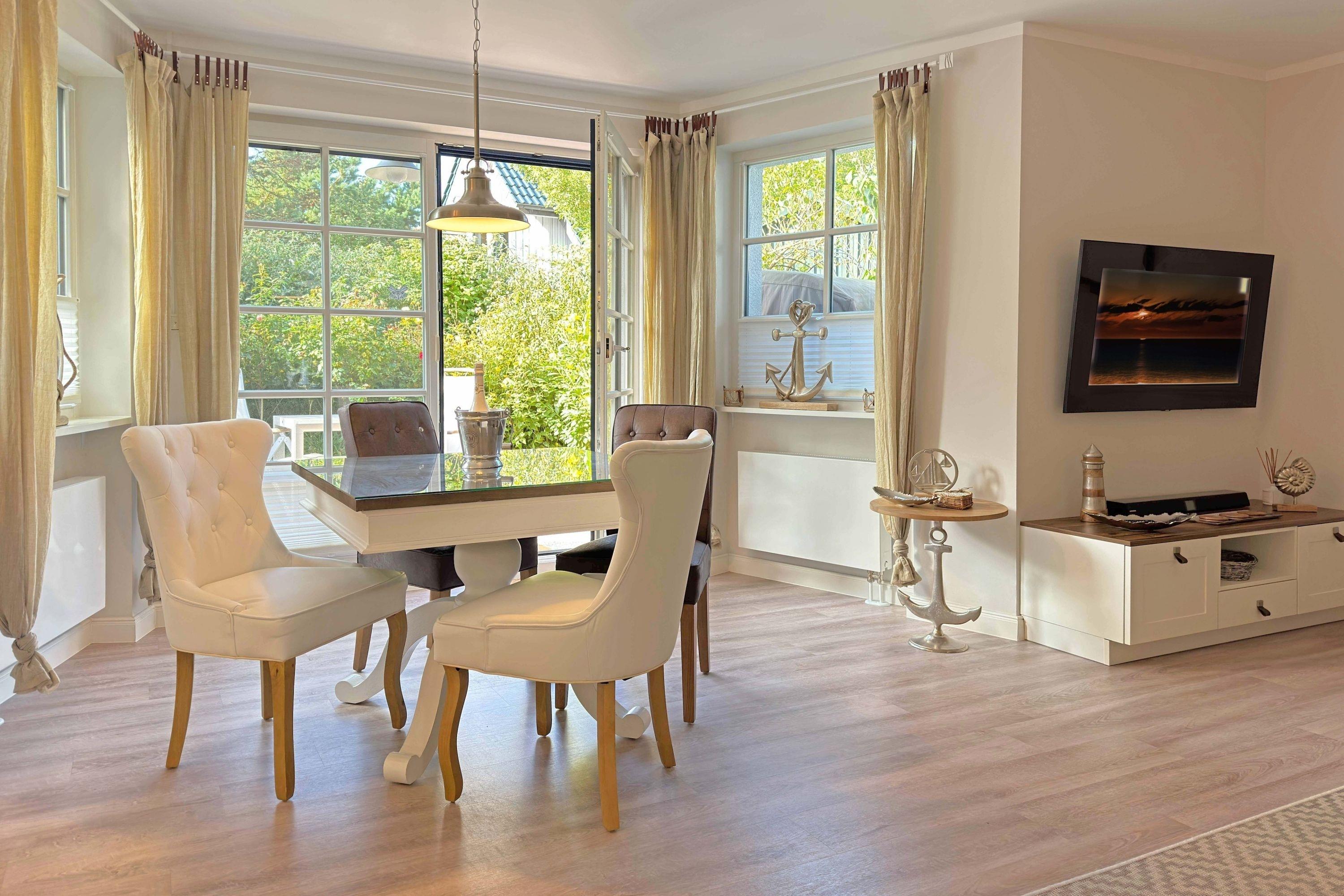Die Ferienwohnung empfängt Sie mit einer harmonischen und einladenden Atmosphäre. Das Schlafzimmer mit luxuriösem Boxspringbett garantiert erholsamen Schlaf. Die voll ausgestattete Küche mit Weinkühlschrank und Kaffeevollautomat lässt keine Wünsche offen – ideal für Weinliebhaber und Kaffeegenießer. Der offene Wohn- und Essbereich mit gemütlicher Couch, Smart-TV und Soundbar bietet den perfekten Rahmen für entspannte Abende.