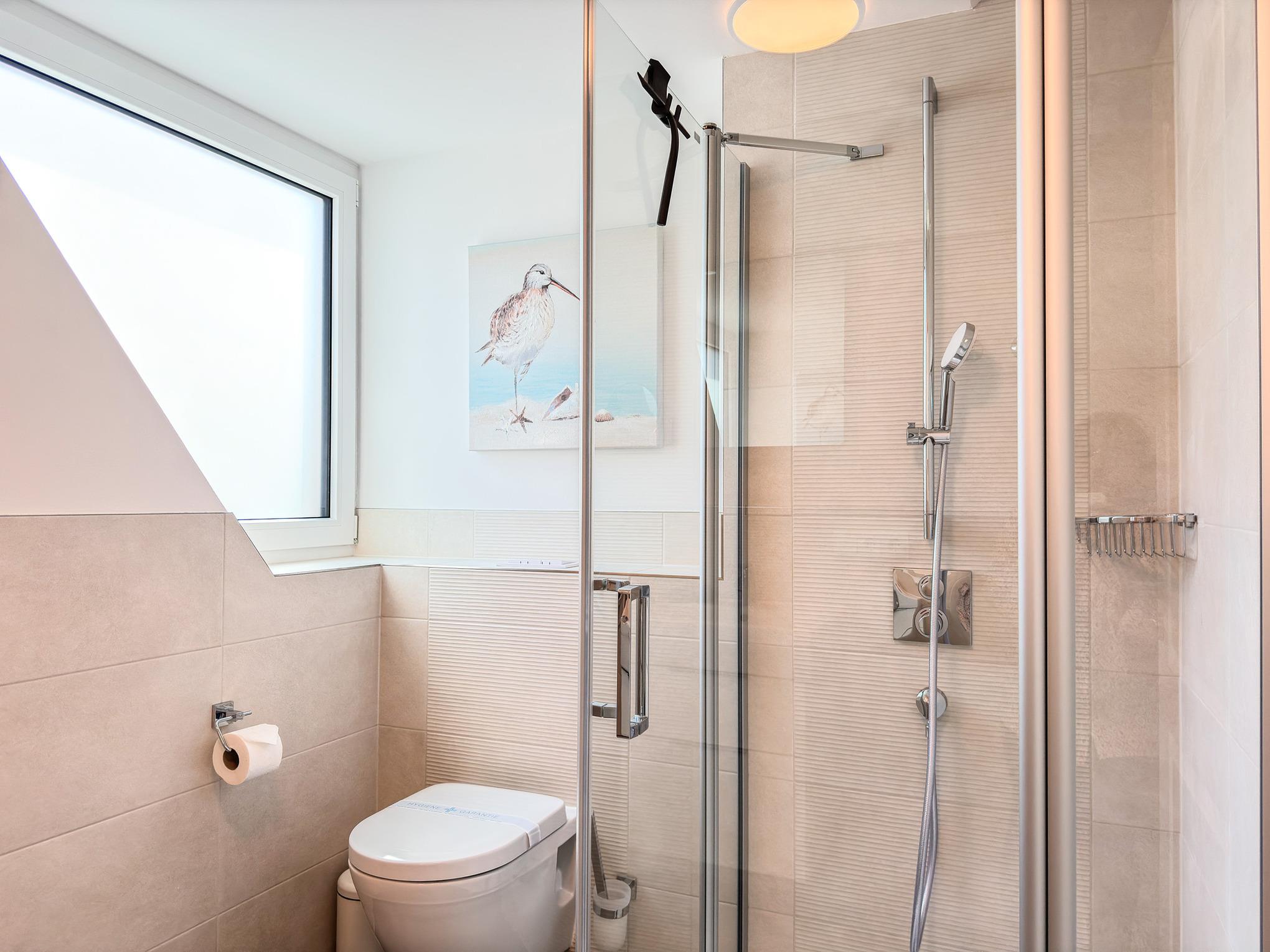 Die Wohnung liegt in einer ruhigen Seitenstraße, nur wenige Schritte vom feinsandigen Strand entfernt – ideal für erfrischende Spaziergänge, erholsame Sonnenstunden oder sportliche Aktivitäten wie Radfahren und Wassersport.