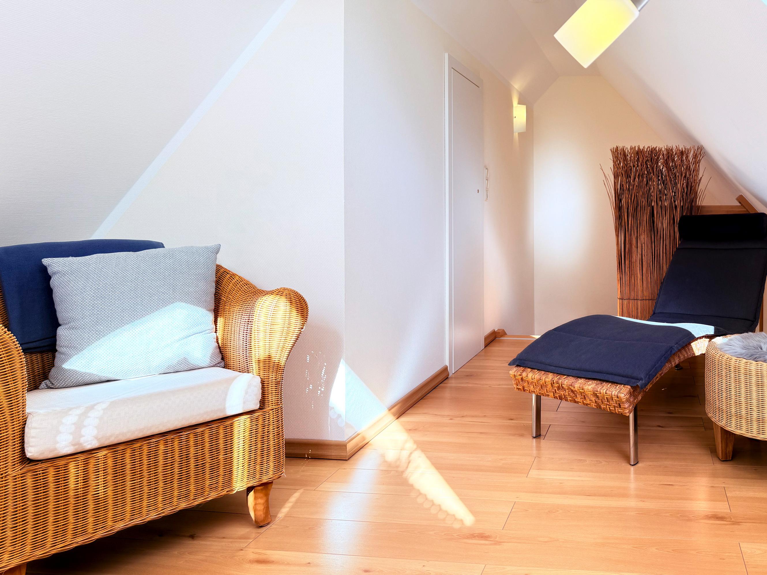 Südwest-Terrasse mit Strandkorb (Mai–Oktober) und Grill