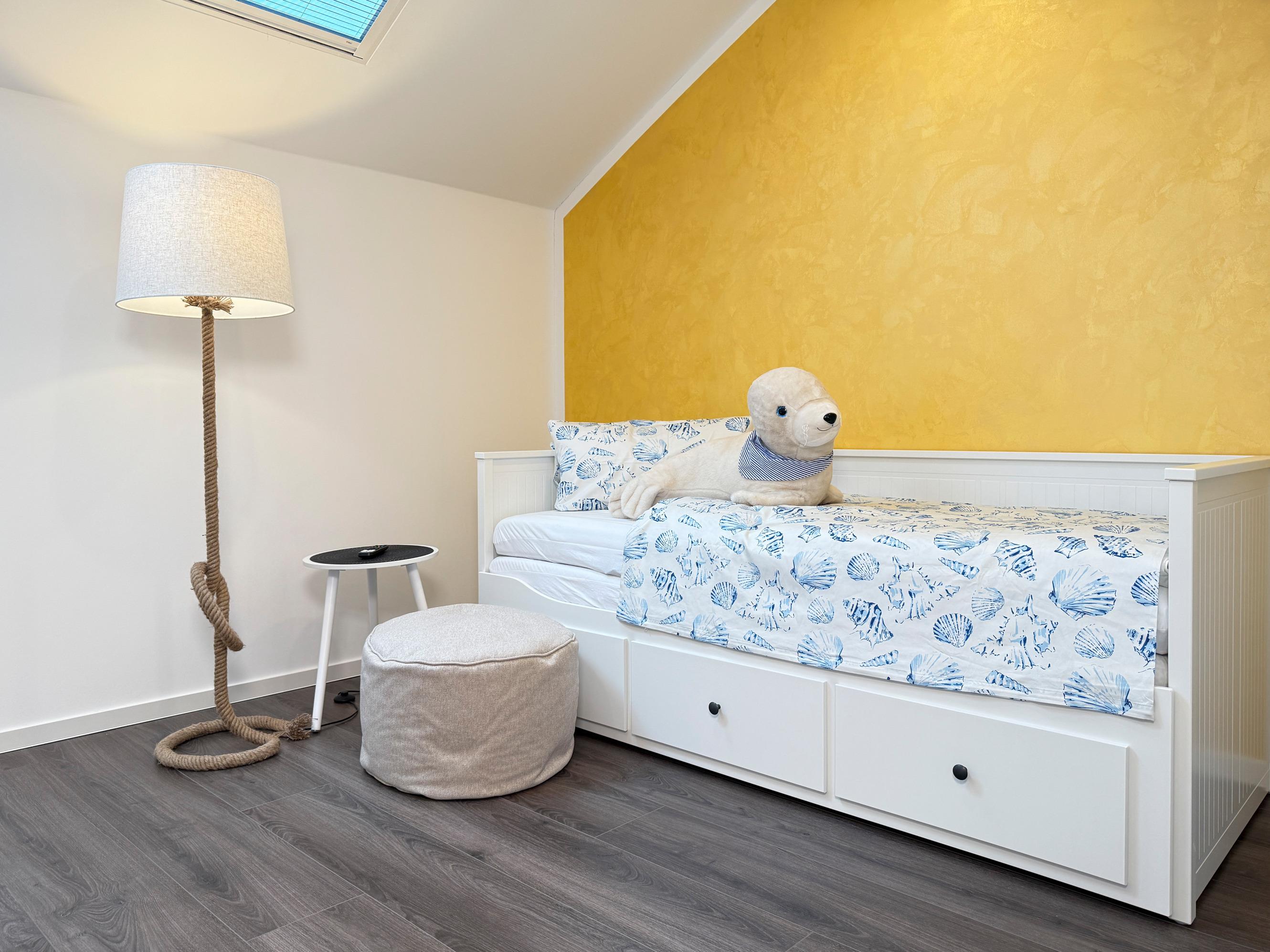 Die drei komfortablen Schlafzimmer sorgen für erholsamen Schlaf. Verdunklungsmöglichkeiten und Rollläden tragen zu einer entspannten Nachtruhe bei.