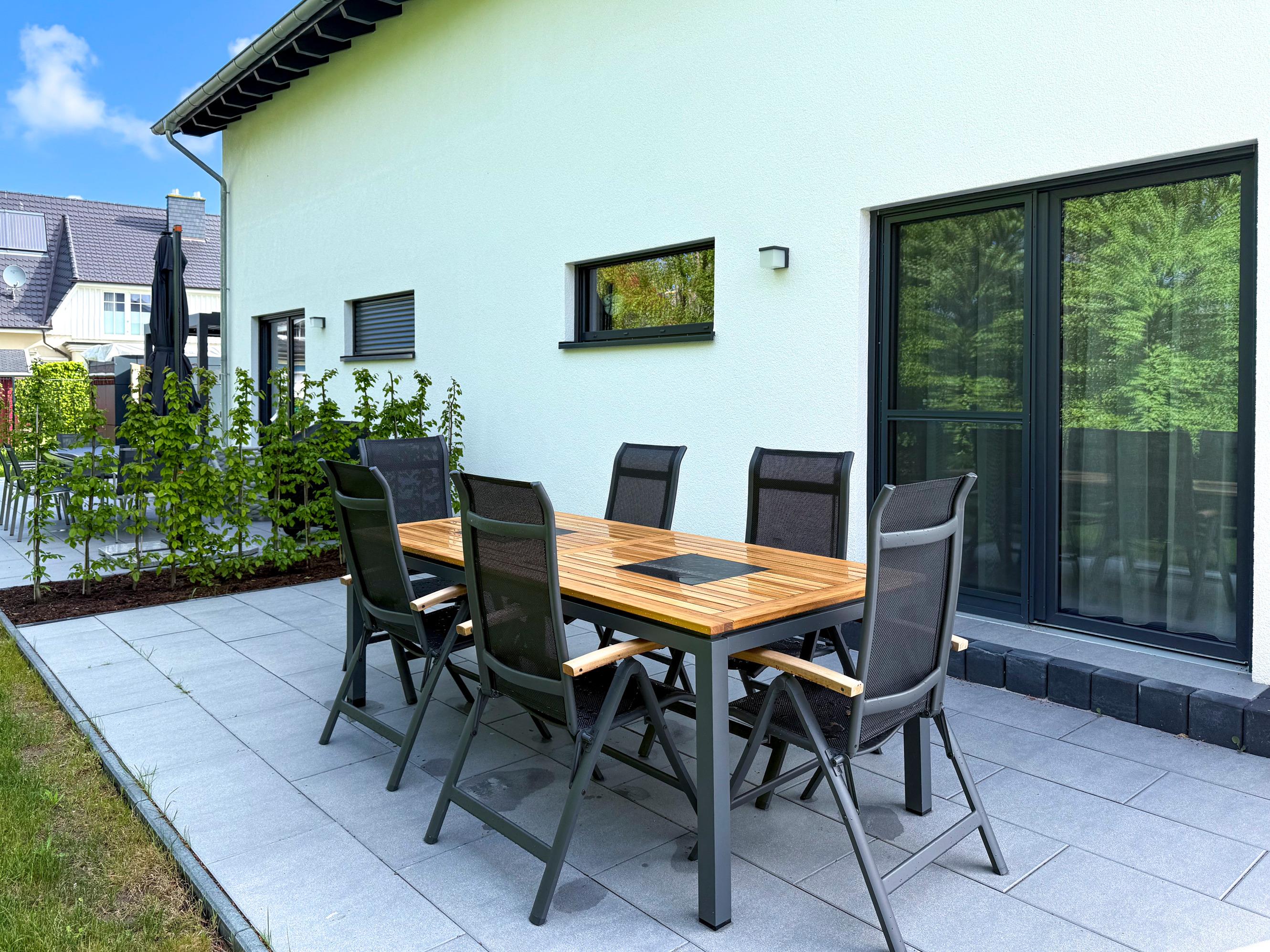 Der umzäunte Garten mit Sonnenterrasse bietet Ihnen viel Platz für Erholung und gemeinsame Mahlzeiten an der frischen Luft. Der Grill lädt zu geselligen Barbecue-Abenden ein, während die Liegewiese zum Sonnenbaden oder Lesen einlädt.
