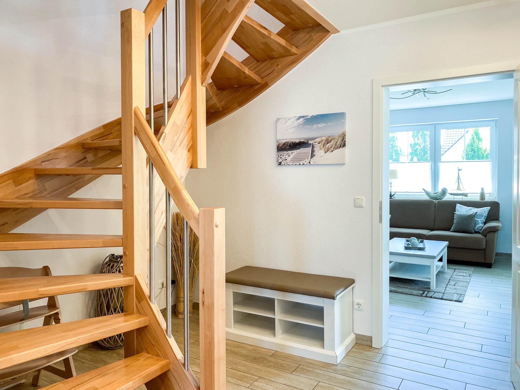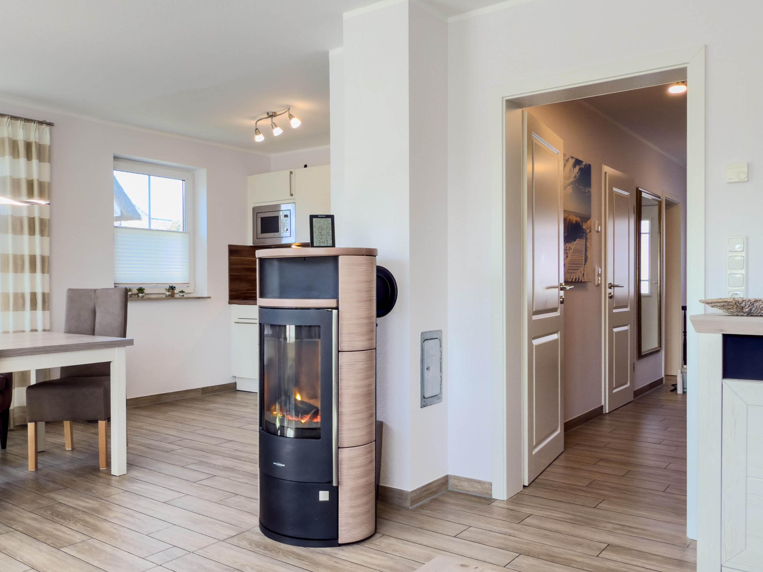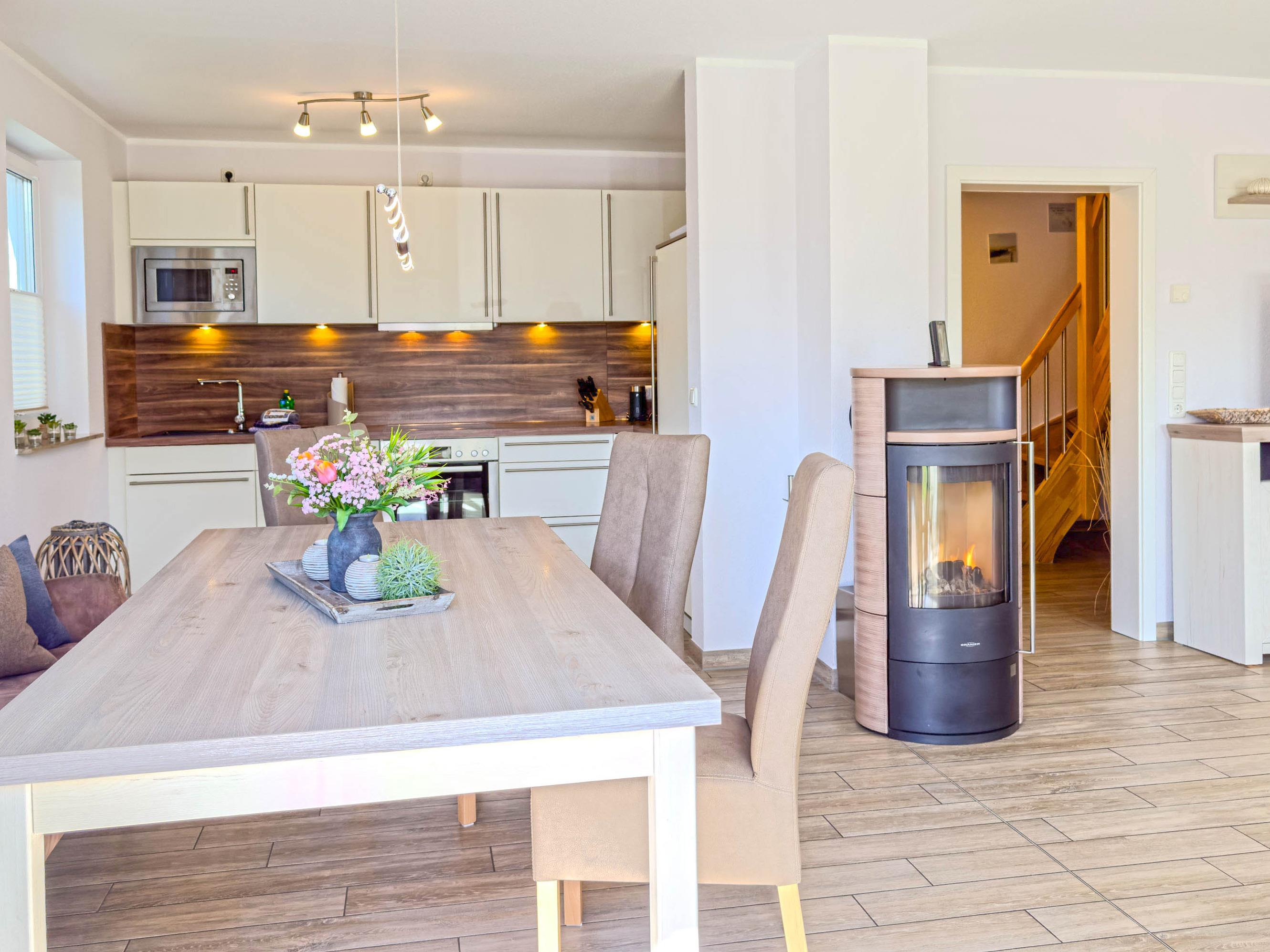 Das Ferienhaus Kleiner Seehund empfängt Sie mit einer warmen und einladenden Atmosphäre. Der großzügige Wohn-Essbereich mit Kaminofen ist das Herz des Hauses und lädt zu entspannten Abenden ein – sei es bei einem guten Buch oder einem gemeinsamen Spieleabend. Die moderne, offene Küche ist vollständig ausgestattet, sodass Sie mühelos köstliche Mahlzeiten für Ihre Liebsten zubereiten können.